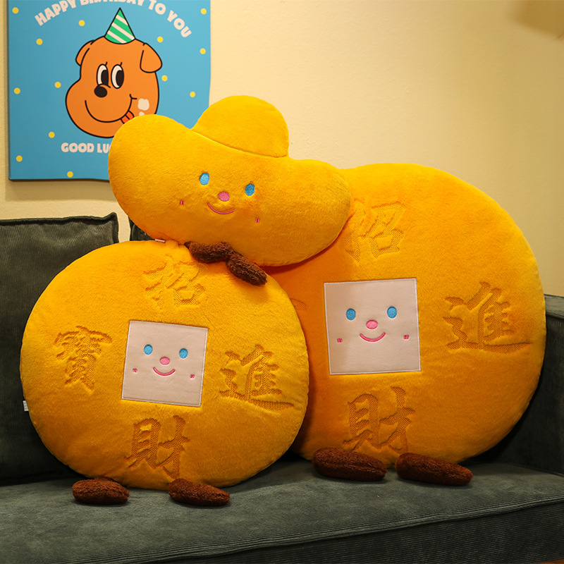 招财进宝金元宝抱枕沙发靠枕毛绒玩偶恭喜发财祝福摆件新年礼物