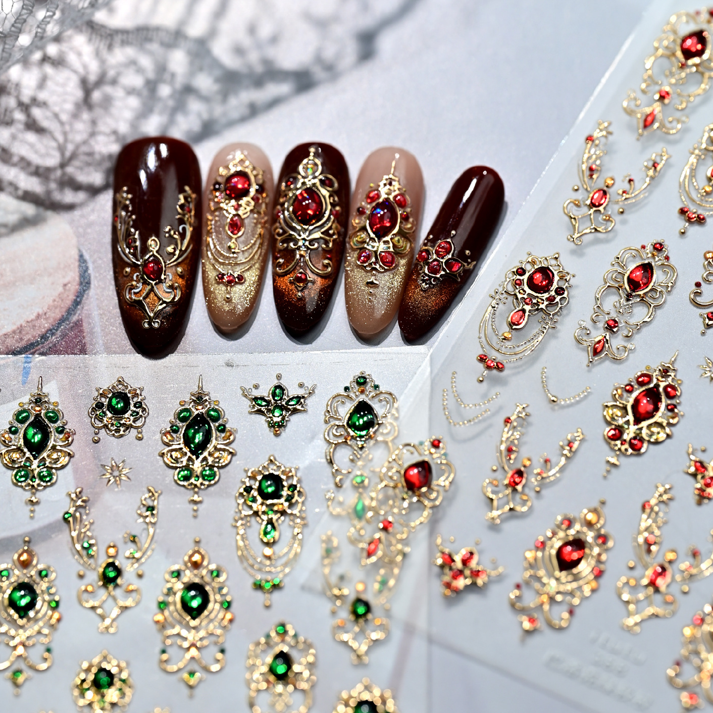复古巴洛克权杖烫金美甲贴纸爆款奢华仿宝石穿戴甲美甲装饰品配饰
