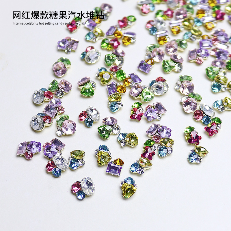 ネットの赤い爆発のキャンデーのサイダーの積み重ねのドリルのネイルアクセサリーの新型のカラーの愛の蝶の完成品の爪の装飾