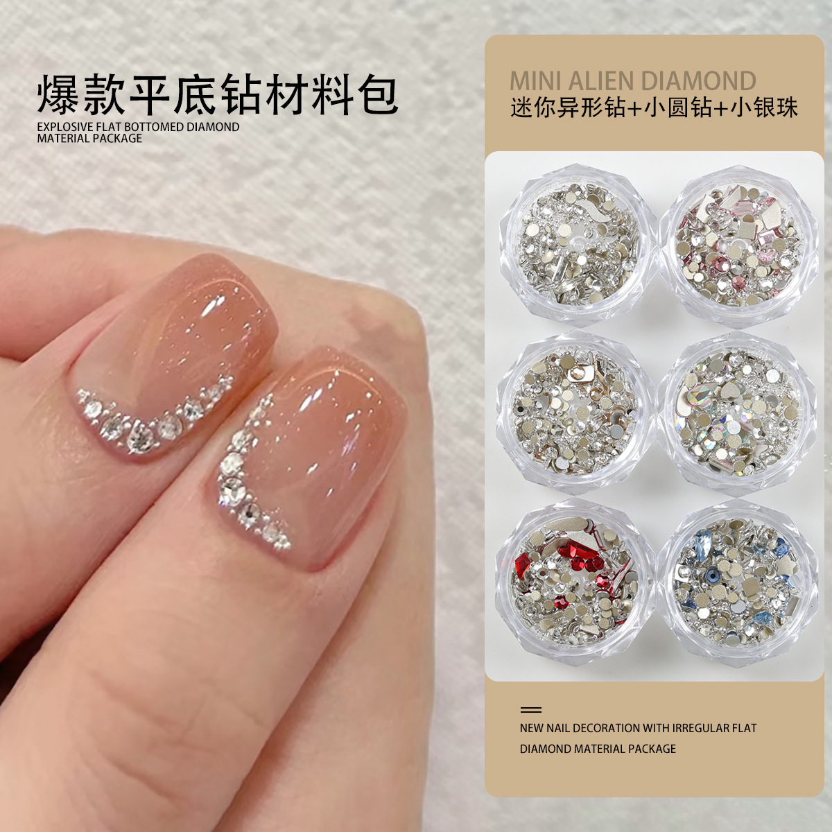 ネイルアートアクセサリー 2025 新しいハイエンドミニ特殊形状平底ダイヤモンド鋼球混合材料パッケージネイルダイヤモンドアクセサリー