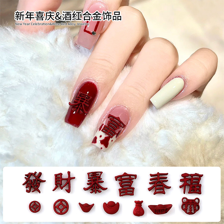 国潮醒狮美甲贴纸新年招财小福马舞狮浮雕背胶可爱立体指甲贴纸