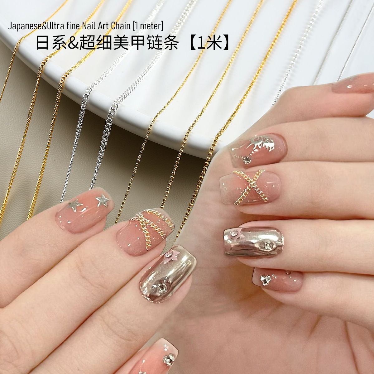 新款日系美甲饰品超细小金银色扁链钢珠链条金属立体百搭美甲配饰
