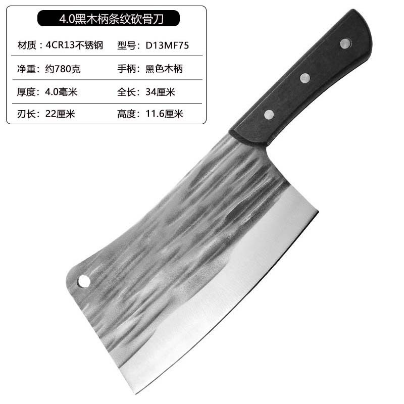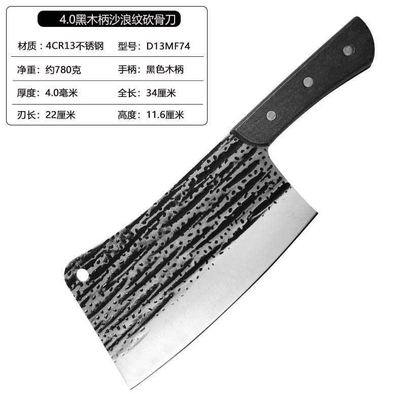 规格 4.0木柄沙浪纹斧头刀,4.0加厚黑木柄沙浪纹大砍骨刀780g,4.0加厚黑木柄条纹大砍骨刀780g