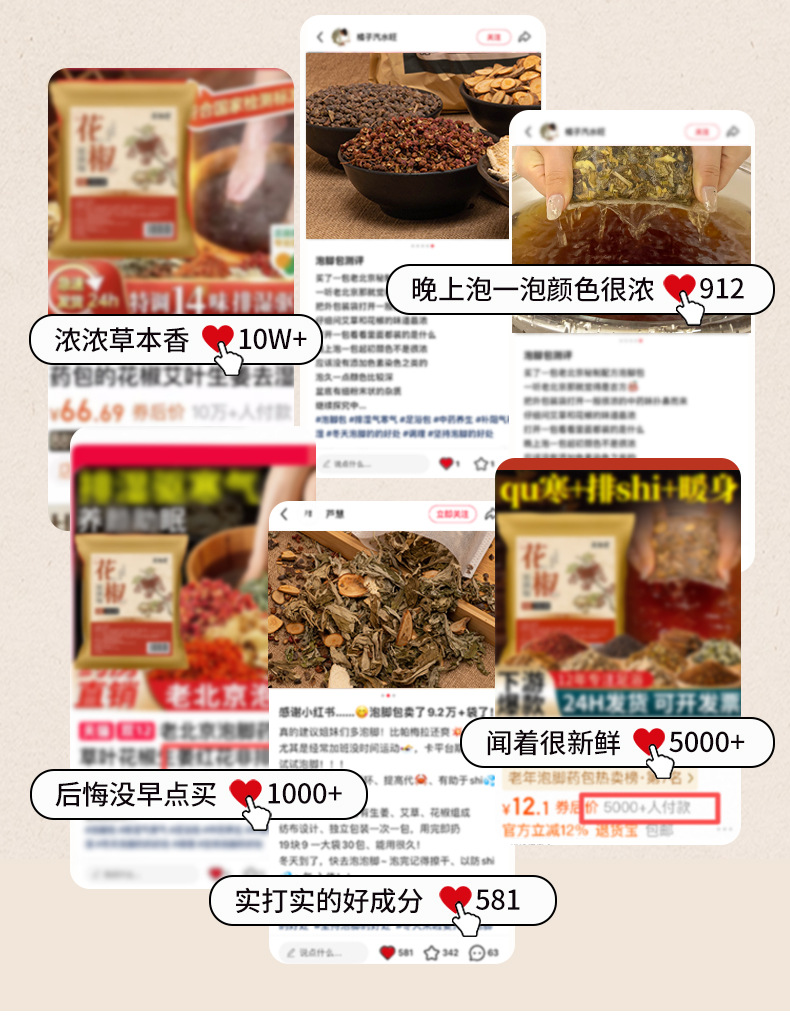 净含量 【老北京配方】30g*30包,【花椒驱han暖身】30g*30包,【湿寒·芍花】30克*30包/袋,【每包整颗红花】升级汉源花椒 25克*30包/袋,【4味红花款】25克*30包/袋,【每包三块姜】30克*30包/袋