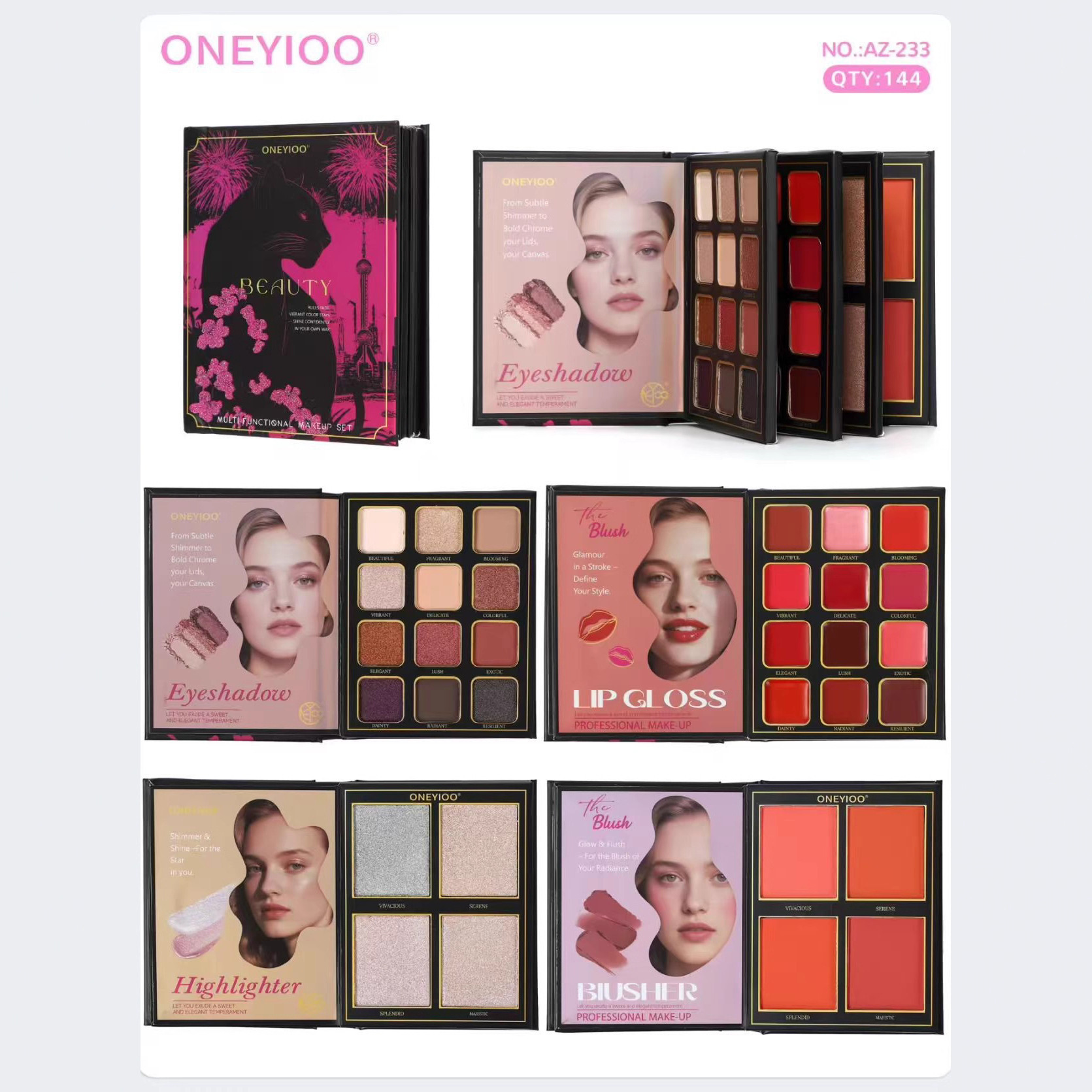 oneyioo新款小本四页书本眼影盘口红高光腮红一体化妆盘