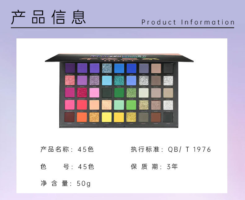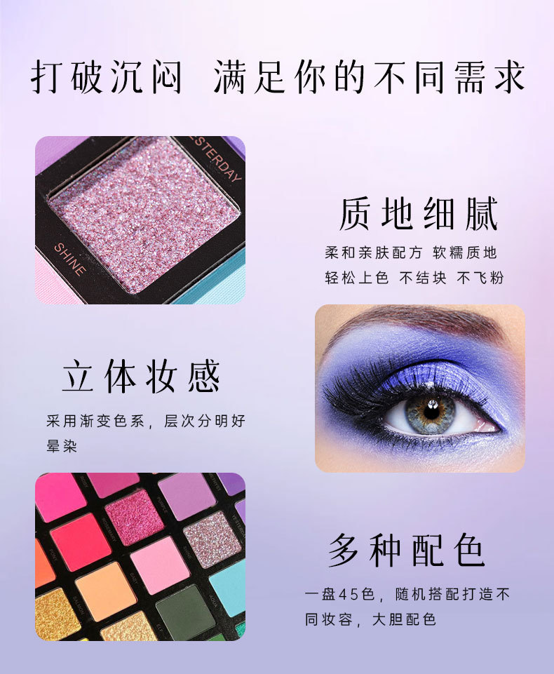 HDKT45彩色眼影盘多色舞台妆化妆师玩妆珠光哑光马卡龙多巴胺眼影