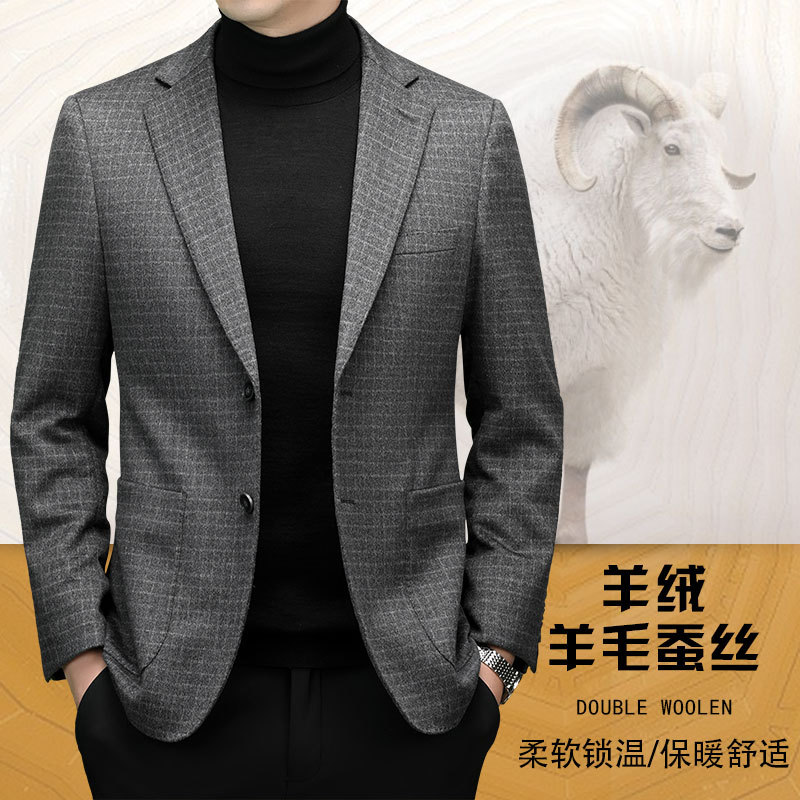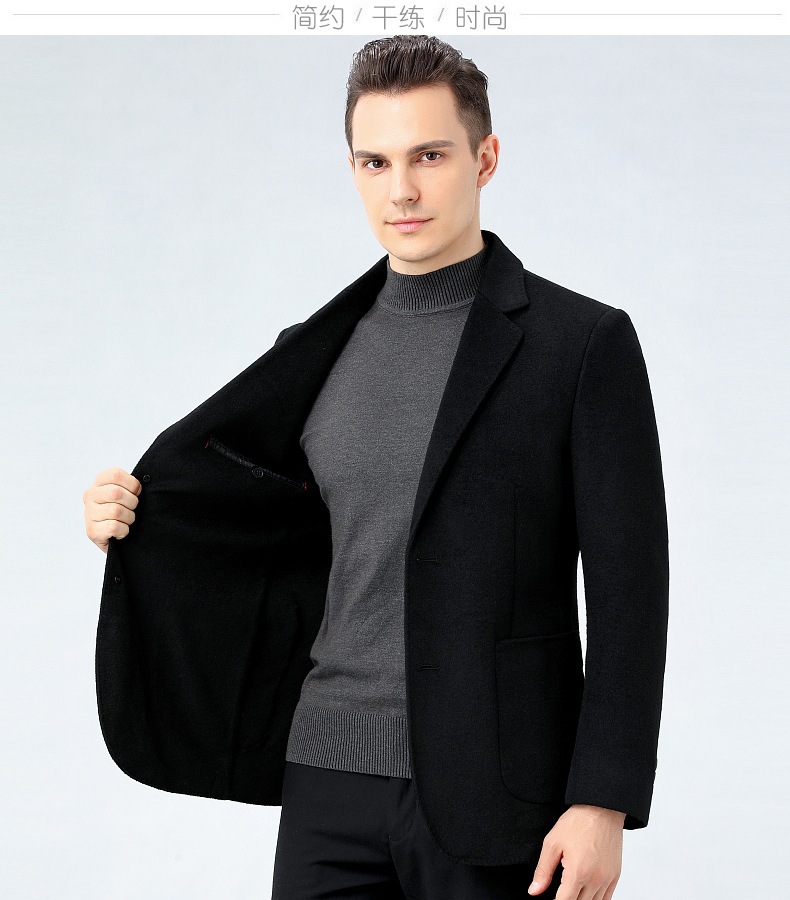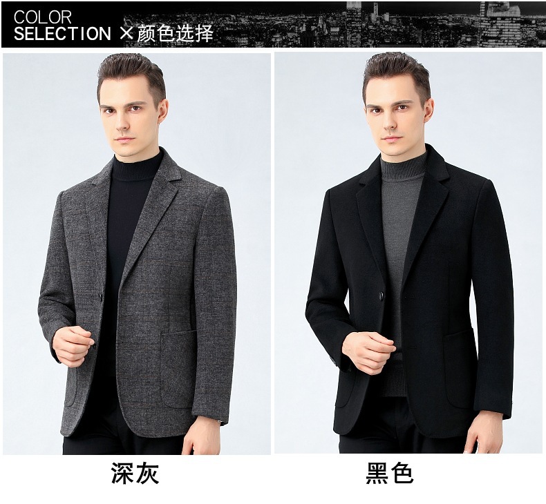 秋冬新款双面羊绒西装男中年爸爸装毛呢外套高端羊毛商务休闲西服