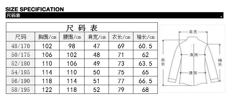 尺码 170/48,175/50,180/52,185/54,190/56,195/58