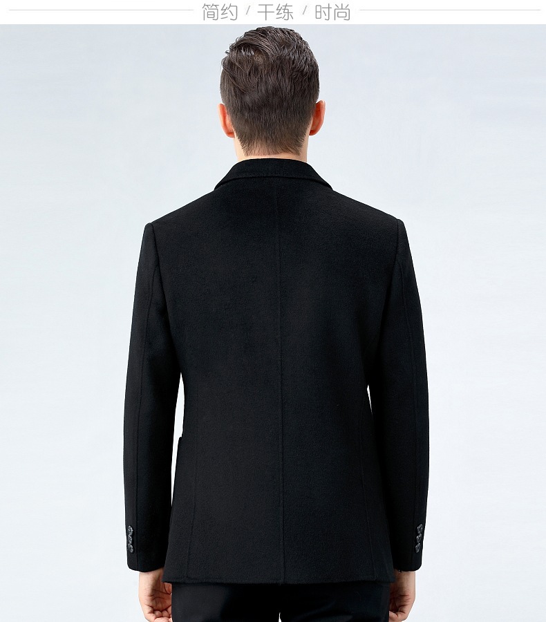 高級男性両面カシミヤスーツ中年お父さんビジネスカジュアル厚いシングル西冬ウールスーツコート