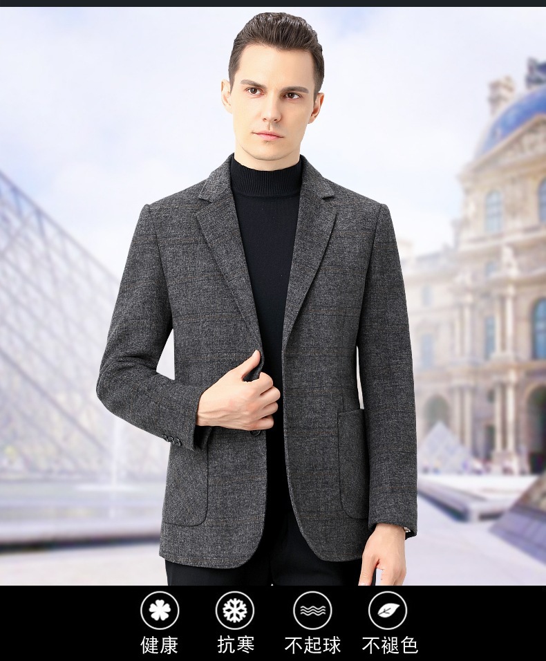 ウールメンズコート、カシミヤスーツ、厚手ビジネススーツ、シルク秋冬ウールシングルスーツ、ダウンジャケット