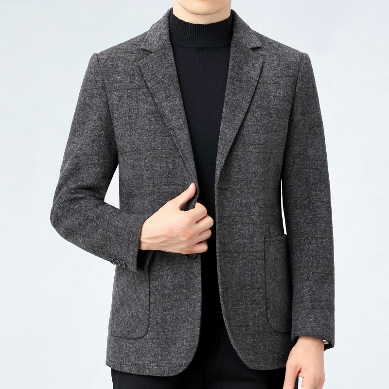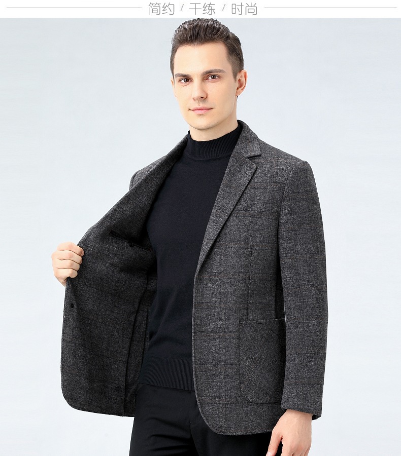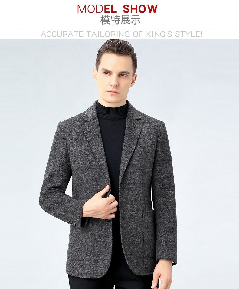 秋冬メンズ100% ウールスーツ中年カジュアル韓国版ラシャスーツ厚手コートqmf 8201