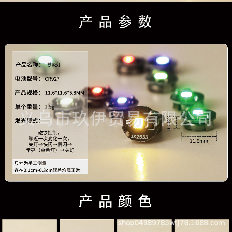 发光磁控灯LED模型 10mm 磁吸感应动漫手办尼泊尔拼豆亚克力DIY灯