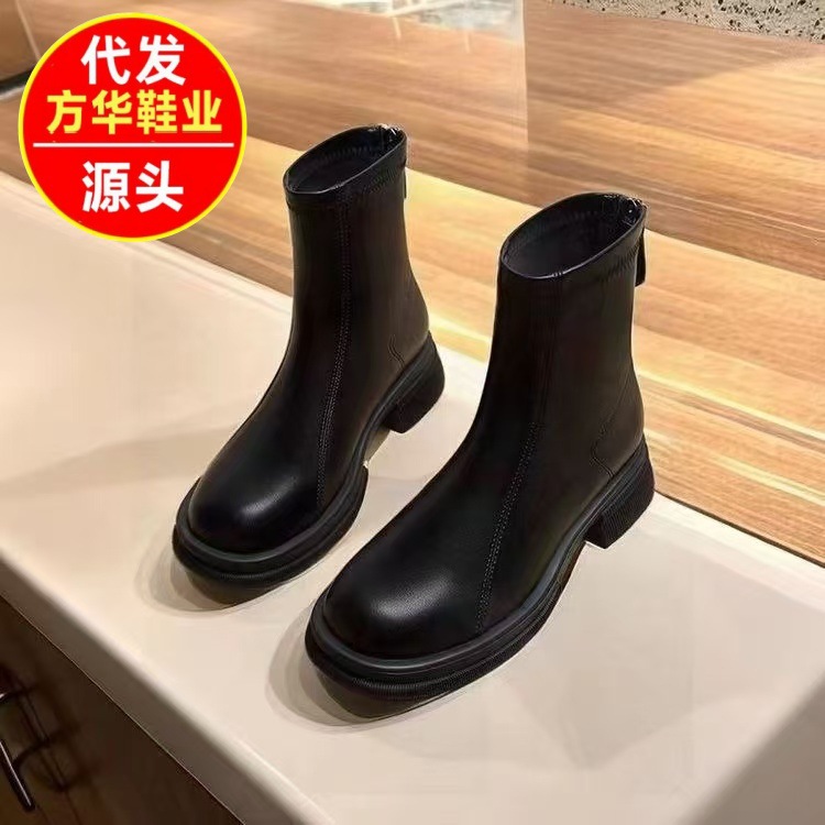 オーガーシェンドン マーティンブーツ レディース 2025年秋冬新作 ブラック 太ヒール 細身 ショートブーツ 厚底 チェルシーブーツ ファッションブーツ