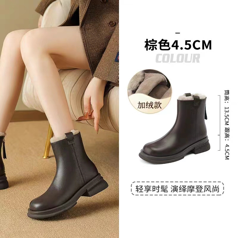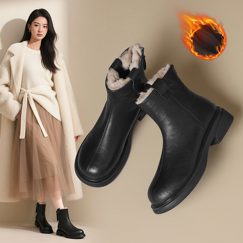 ZHR则则时尚复古平底短靴2025秋冬新款轻便舒适加绒保暖显瘦女靴