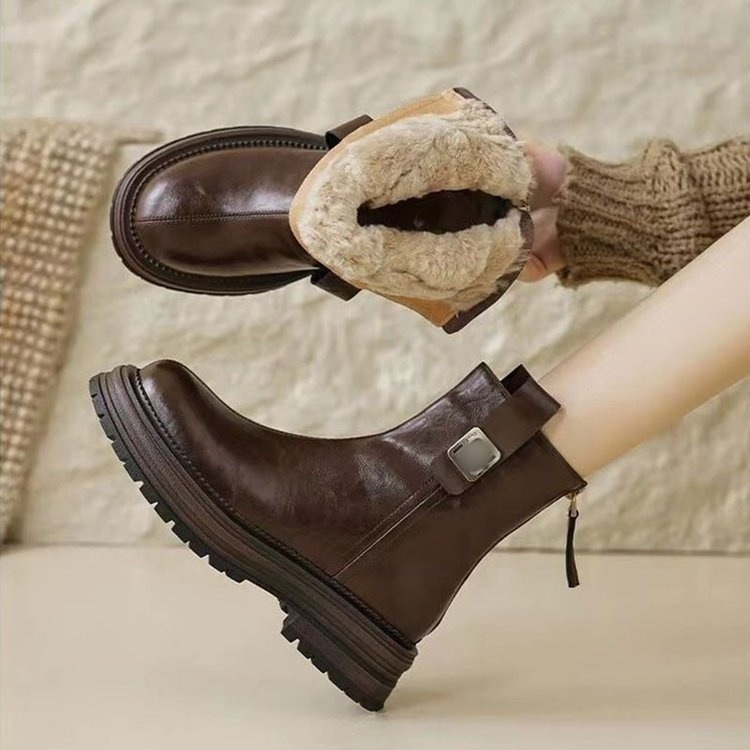 羊羔东北女鞋冬季靴子特厚新款50短靴英伦保暖防滑加厚马丁耐磨
