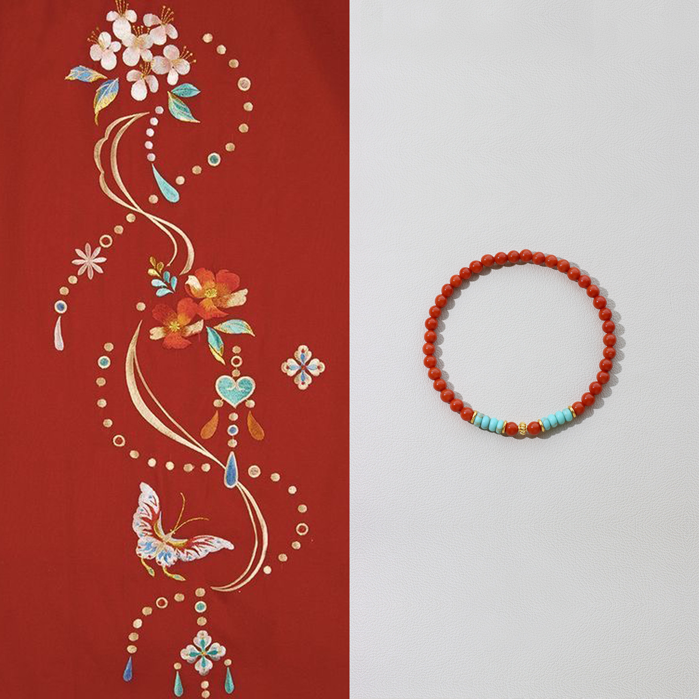 原创新中式天然南红玛瑙绿松手串女柿柿如意送礼物手