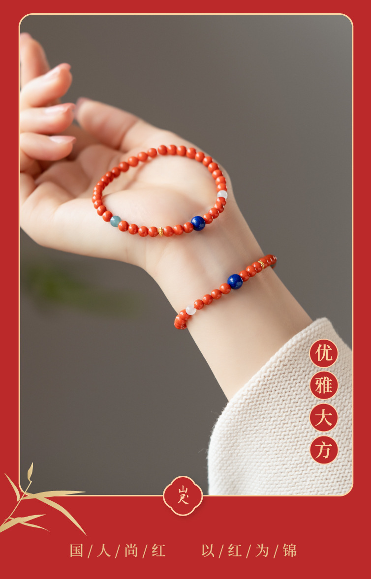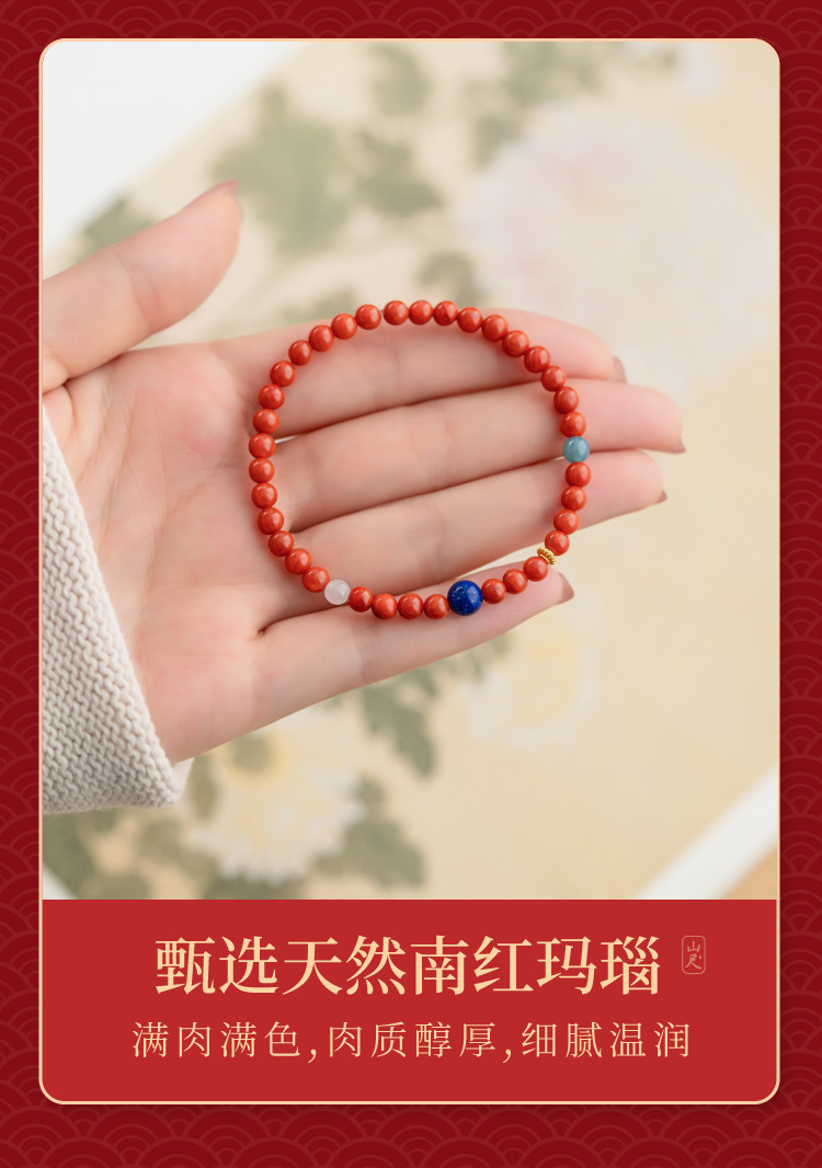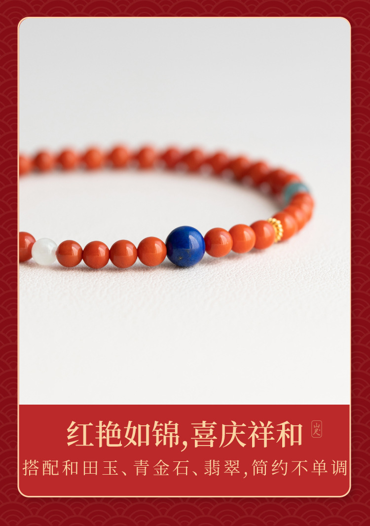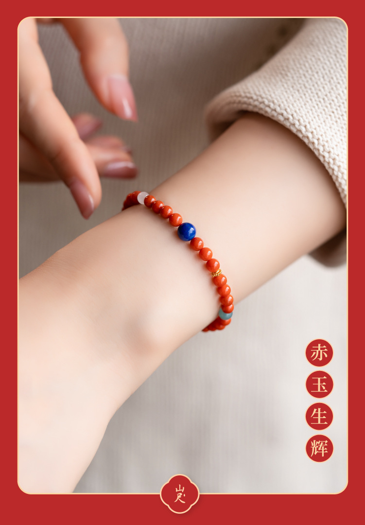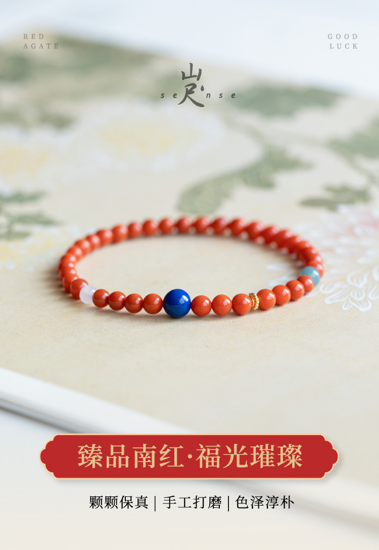 南红手串小米珠保山红玛瑙手链红色本命年天然翡翠青金石转运