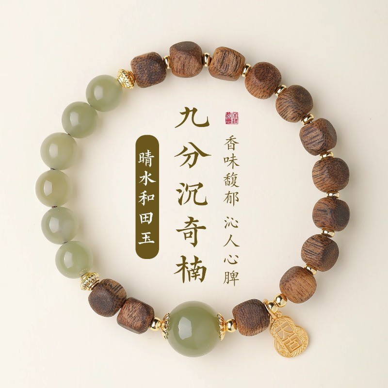 沉水奇楠沉香手串女款高端白奇楠天然和田玉保真佛珠手链节日礼物