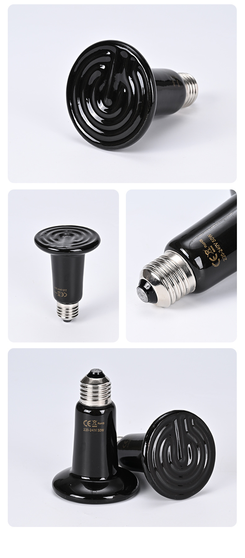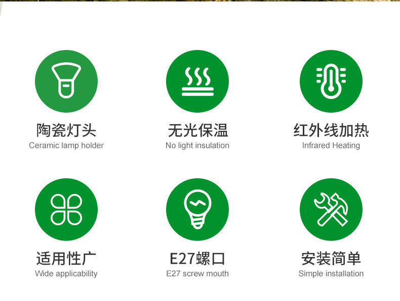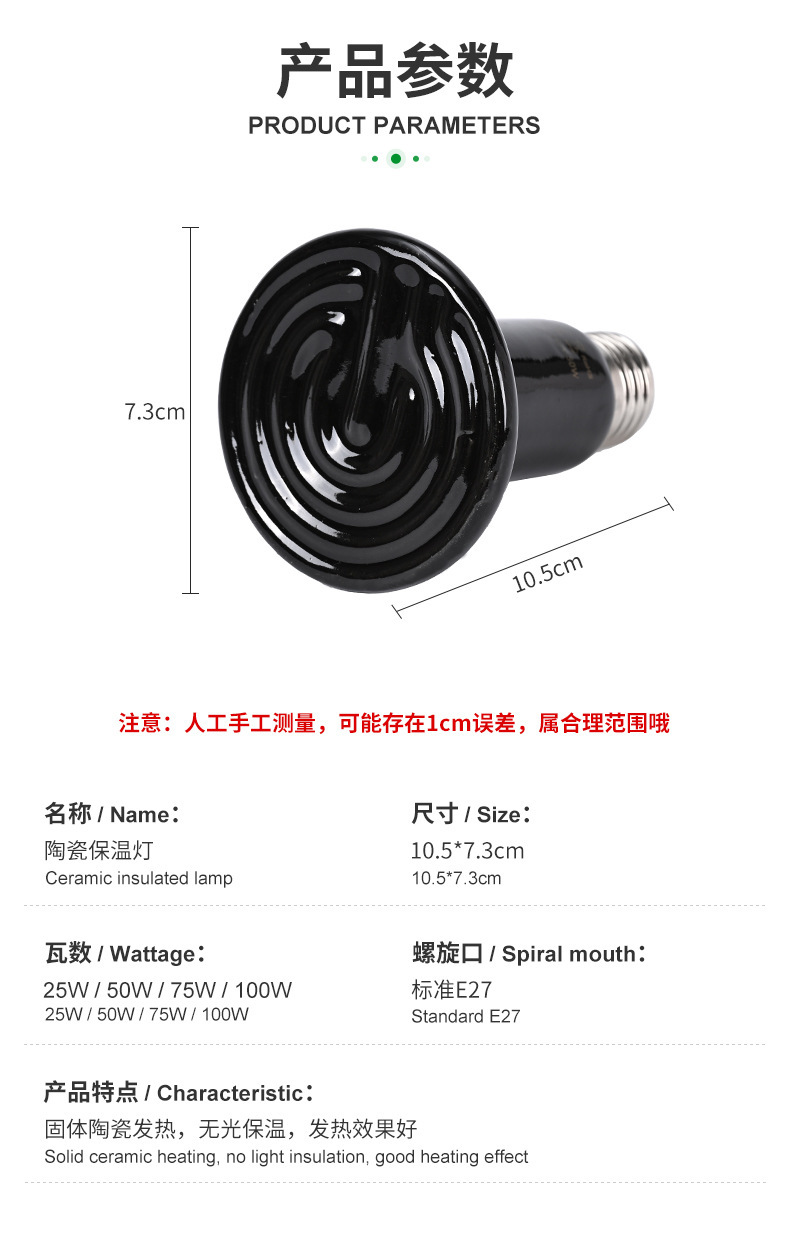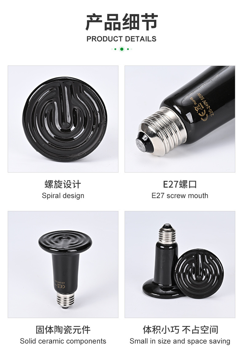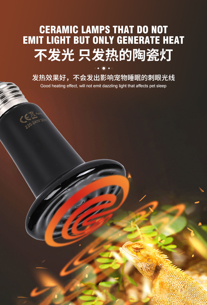 陶瓷加热灯无光灯爬宠取暖灯泡爬虫宠物蜥蜴晒背鹦鹉芦丁鸡保温灯