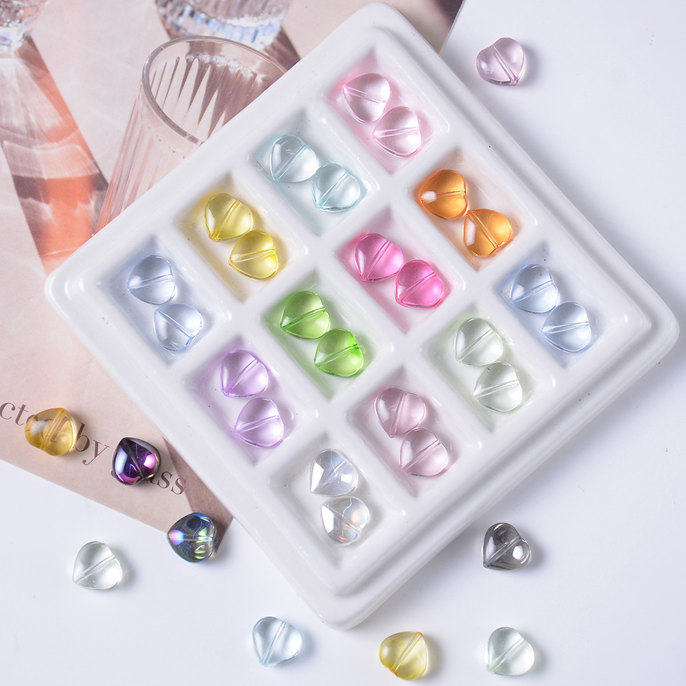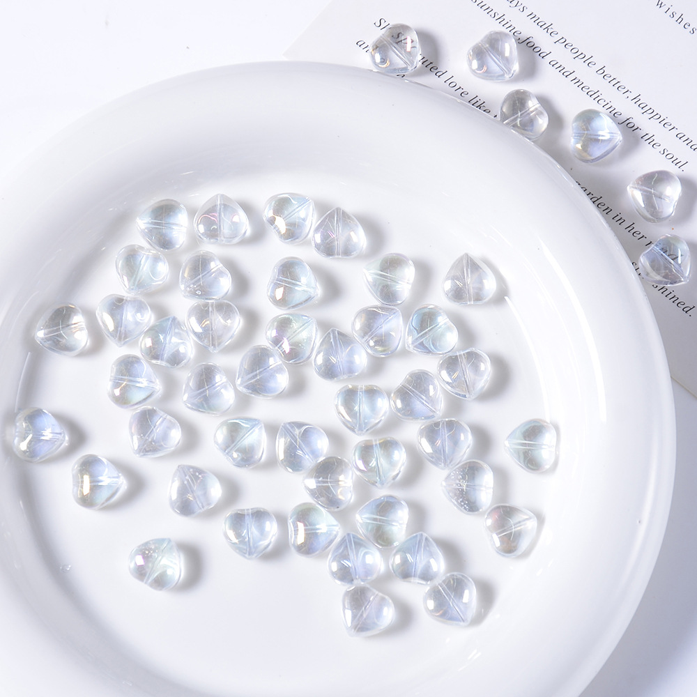彩色透明穿孔小爱心串珠 手工diy水晶桃心手串手机链饰品配件散珠