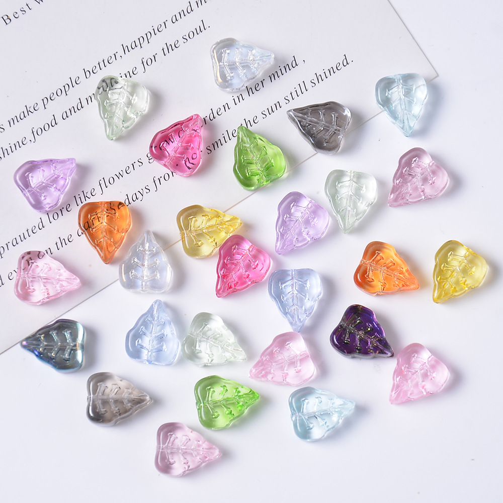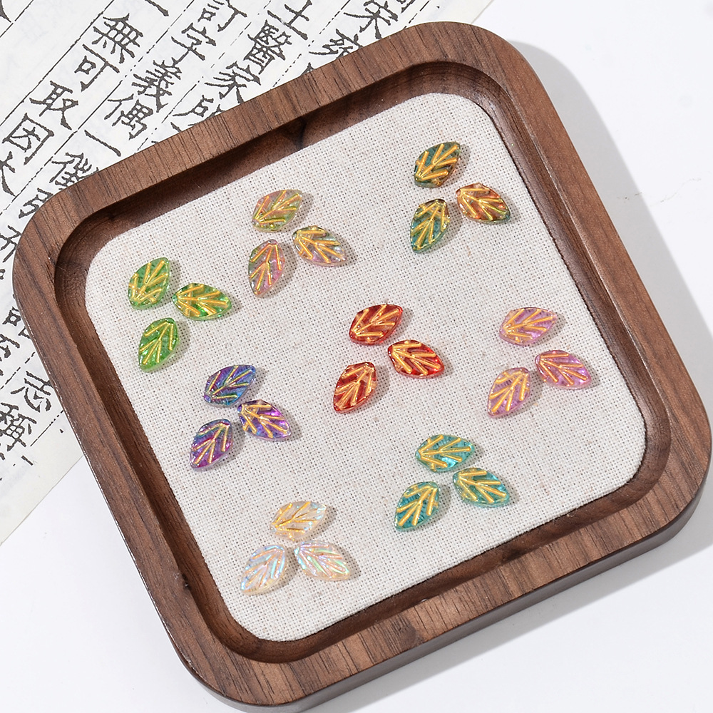 捷克琉璃横孔树叶描金古风叶子 手工diy手链发簪头饰材料配件散珠