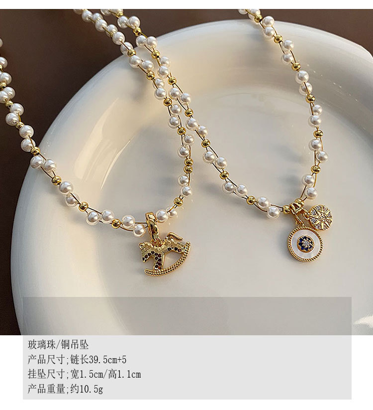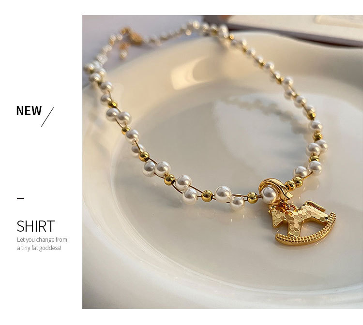 复古碎冰冰木马吊坠气泡缠绕珍珠项链女设计感精致时尚锁骨链