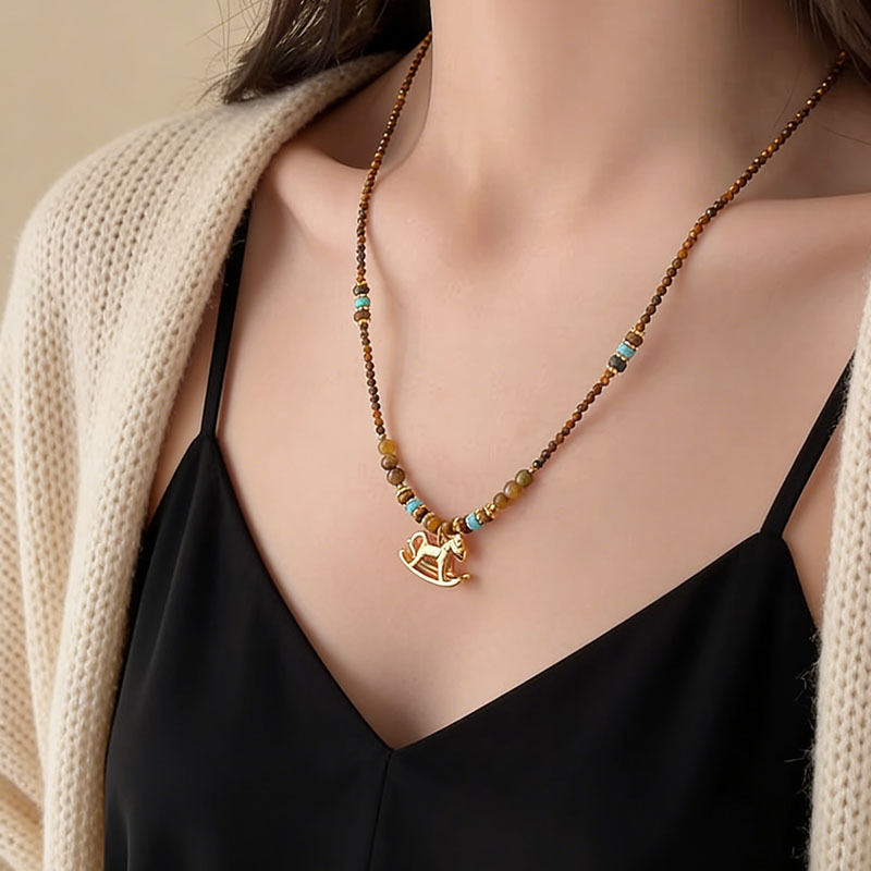 《逐风小马》金色虎眼石小马吊坠项链高级感毛衣链小众设计2026款