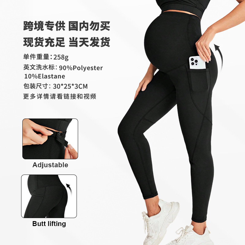 クロスボーダーヨーロッパとアメリカのフィットネススポーツポケット付きヌードフィーリングタイトマタニティレギンス、腹部サポート付き、女性用シンプルな高弾性ヨガパンツ