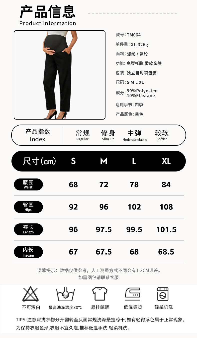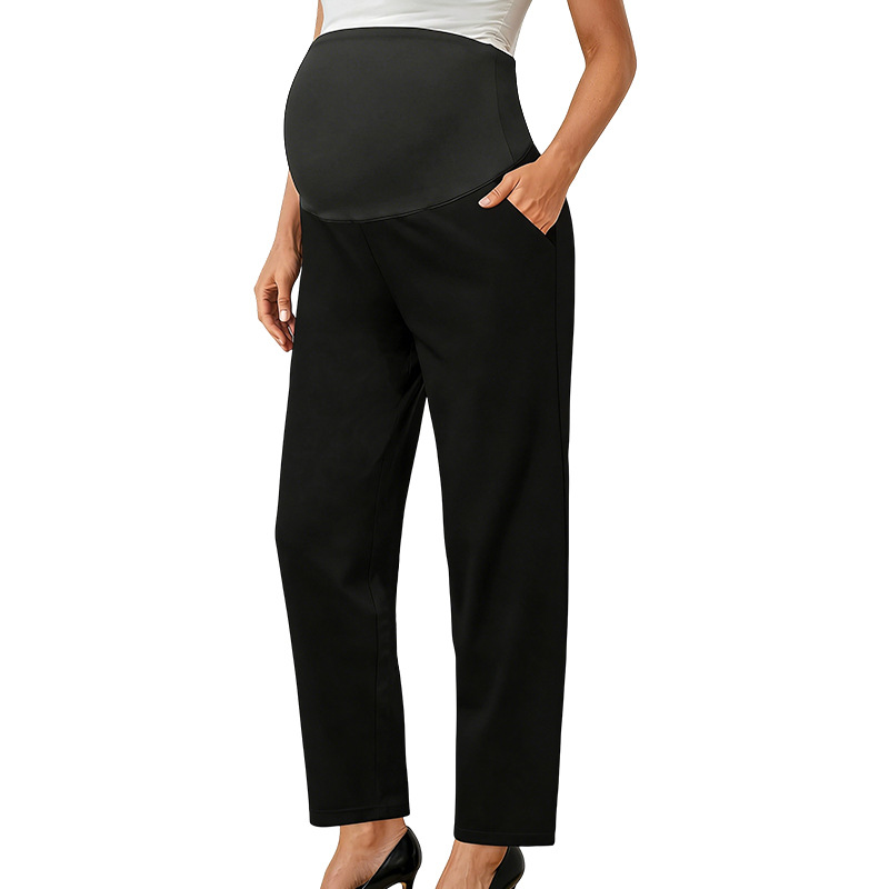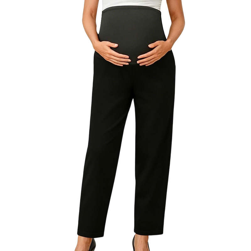 欧美跨境孕妇托腹裤黑色高腰休闲直筒裤弹力宽松孕妇长裤通勤百搭