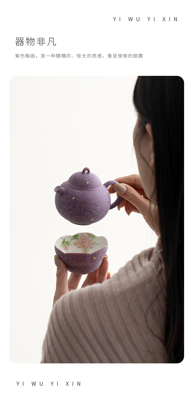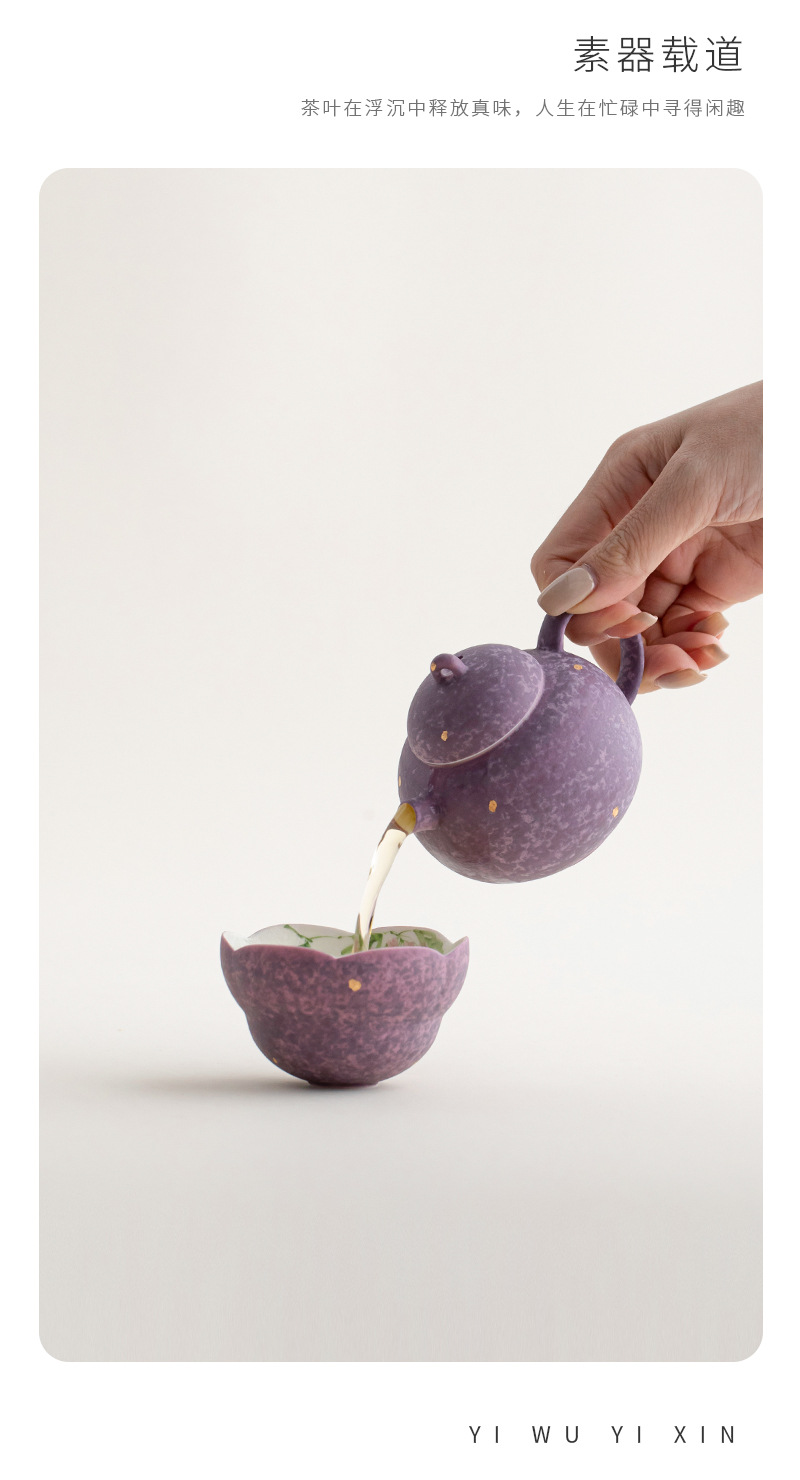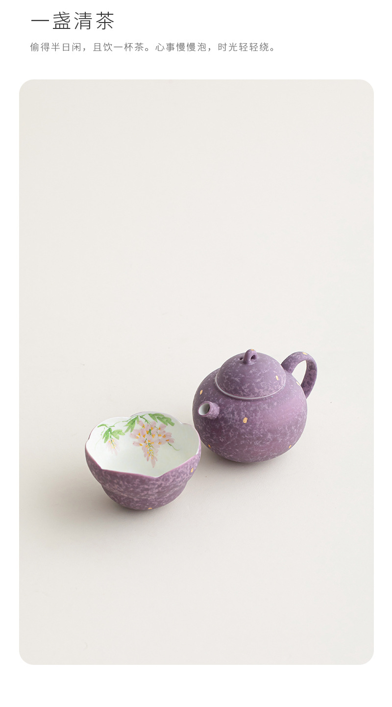手绘紫藤花茶壶茶杯一壶一杯功夫茶具新中式一人饮套组旅行套装