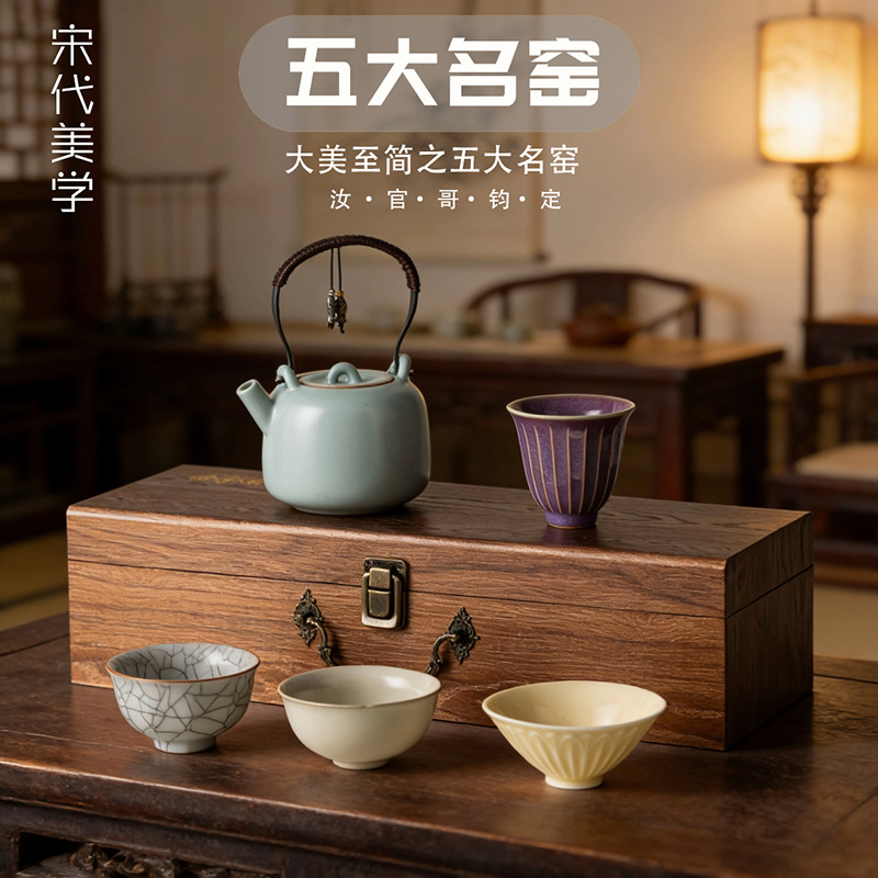 故宫文创宋代汝窑五大名窑茶具茶杯套装公司商务年会礼品定伴手礼