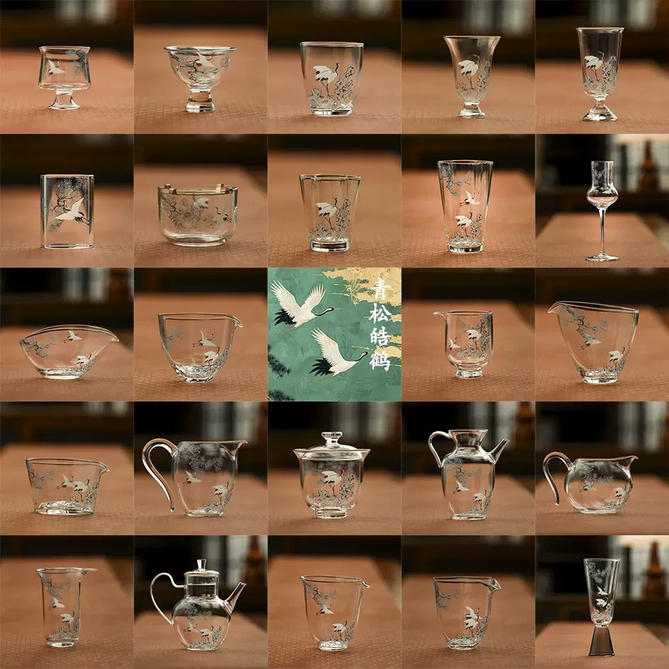 宜物宜心青松皓鶴2025年ガラスシリーズ手作り絵蓋ティーポット