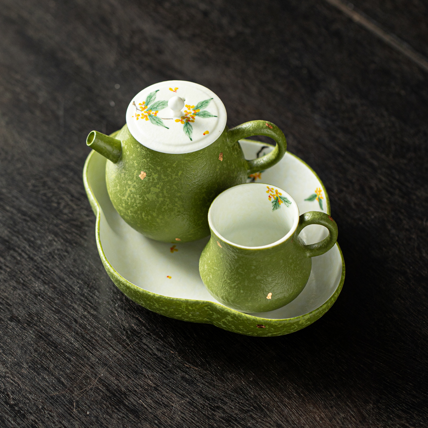 手绘洒金一壶一杯功夫茶具釉下彩桂花茶壶茶杯干泡盘一人饮小套装