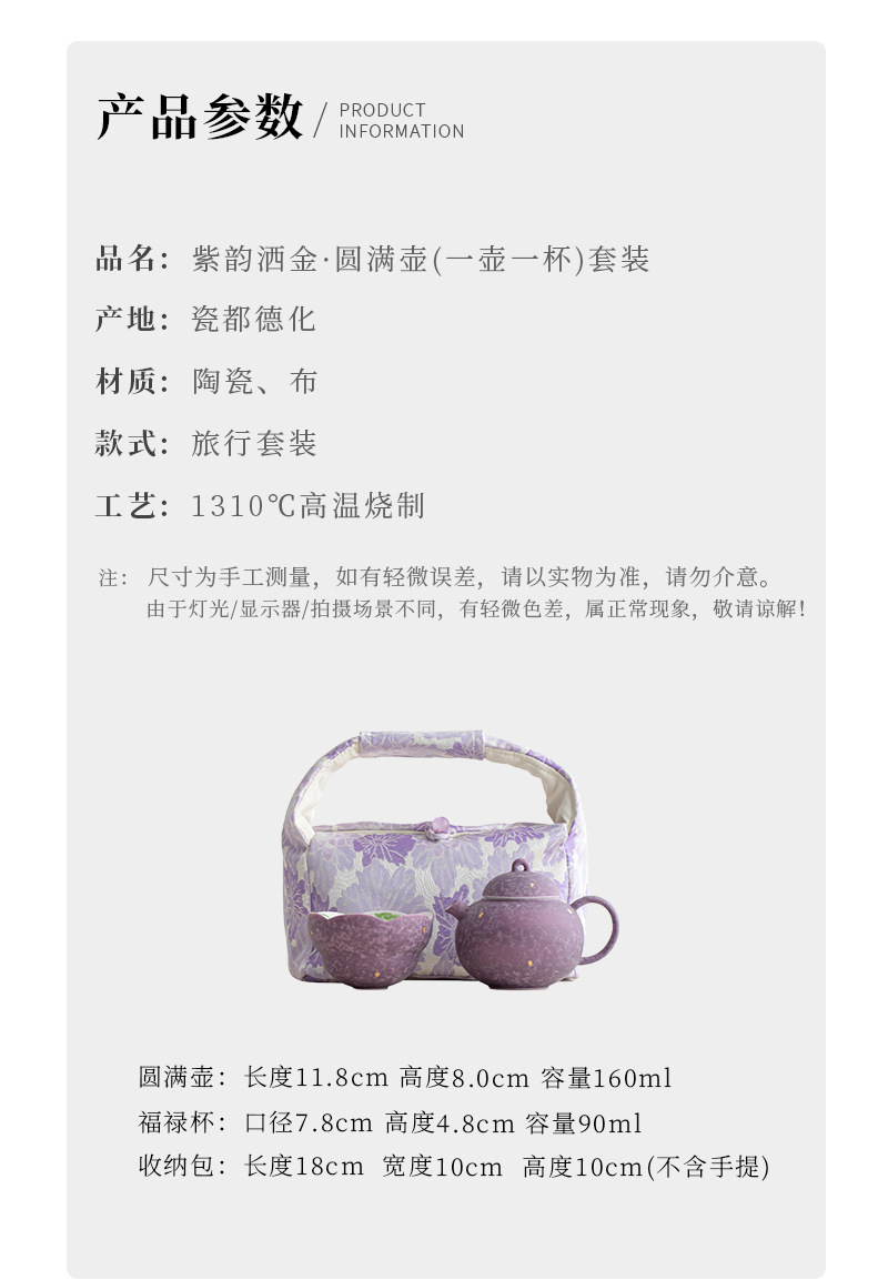 颜色 紫韵洒金·福禄杯(单杯)_简装,紫韵洒金·圆满壶(单壶)_简装,紫韵洒金·圆满壶(一壶一杯)_简装,紫韵洒金·圆满壶(一壶一杯)_布包装