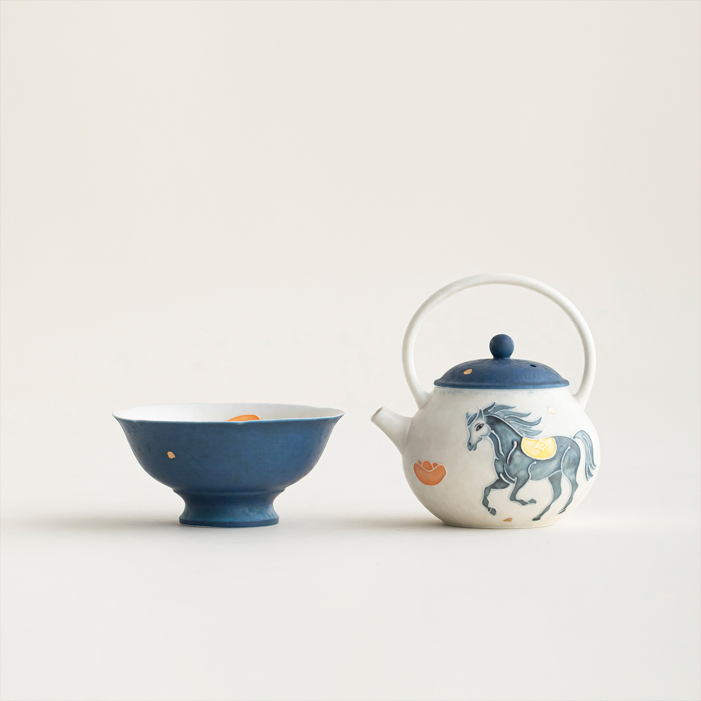 马上有钱手绘提梁壶茶杯陶瓷家用一壶一杯带过滤壶套组办公室茶具