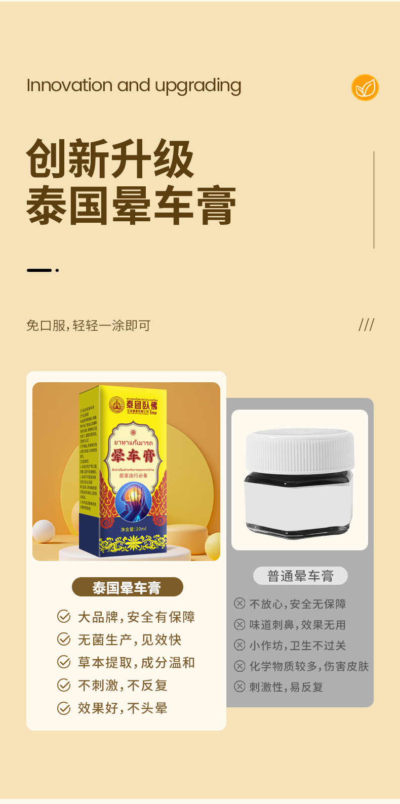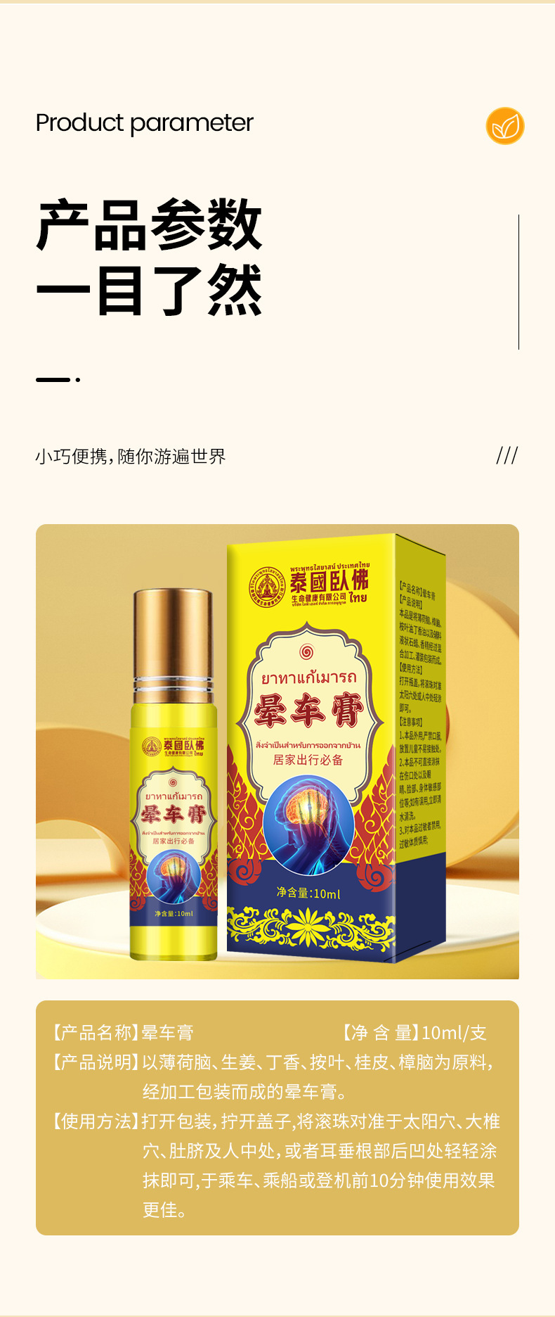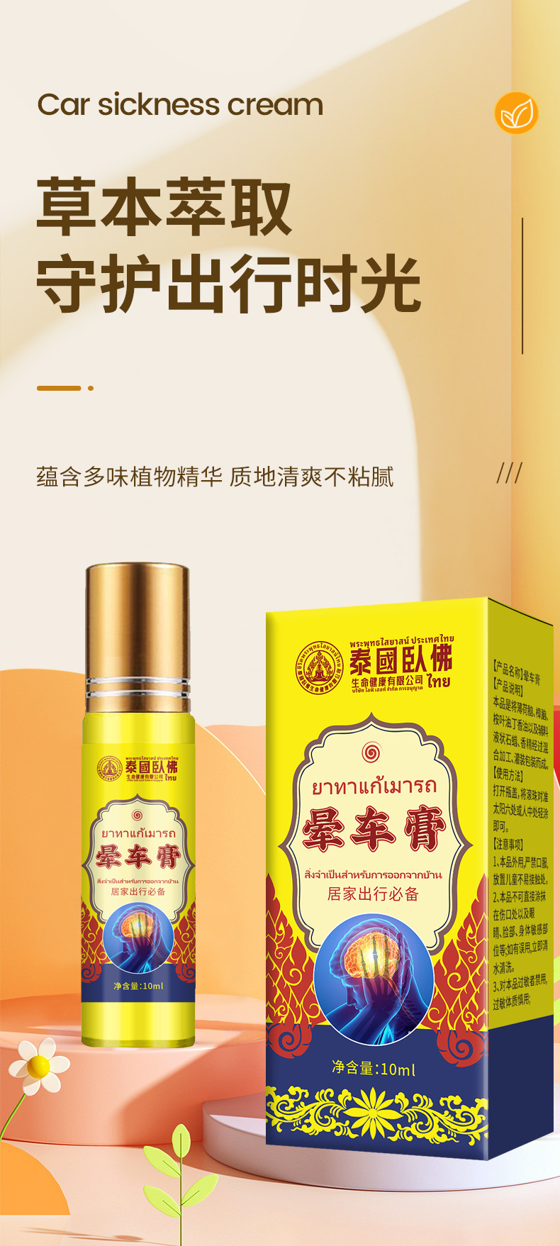 泰国臥佛晕车膏 薄荷清凉精油滚珠旅行晕车晕机晕船居家日用 代发