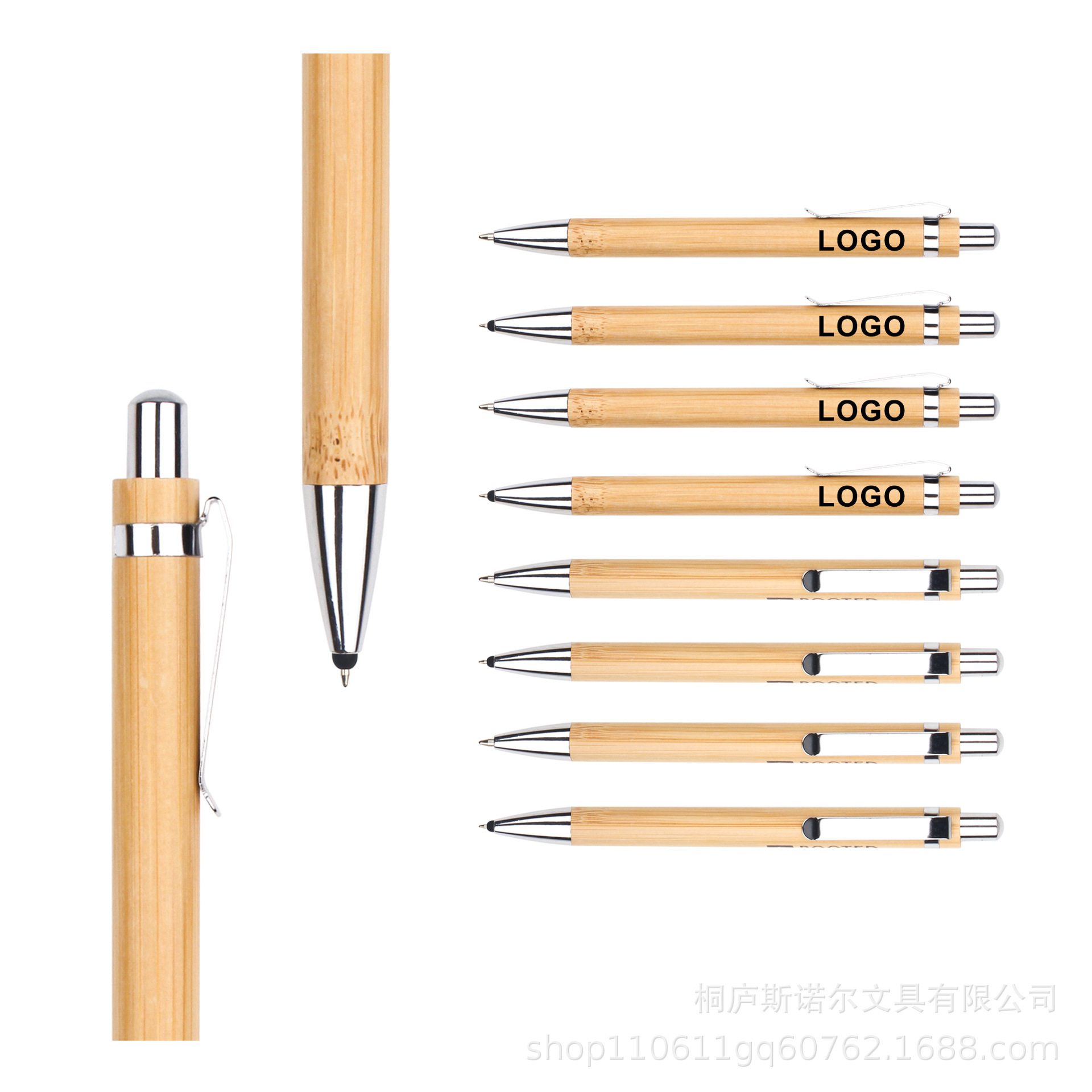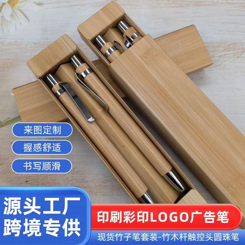 スポット竹ペンセット金属フック竹木棒タッチヘッドボールペン印刷カラー印刷ロゴ広告ペン