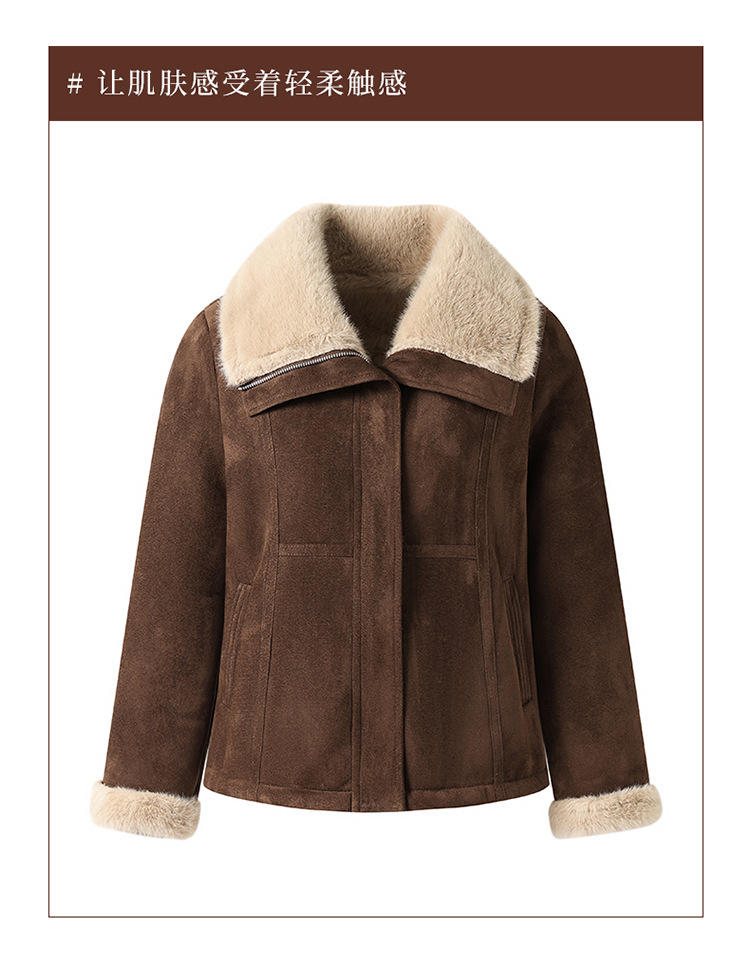 美拉德风加绒加厚羊羔毛短外套女款翻领皮毛一体夹克时尚毛呢外套