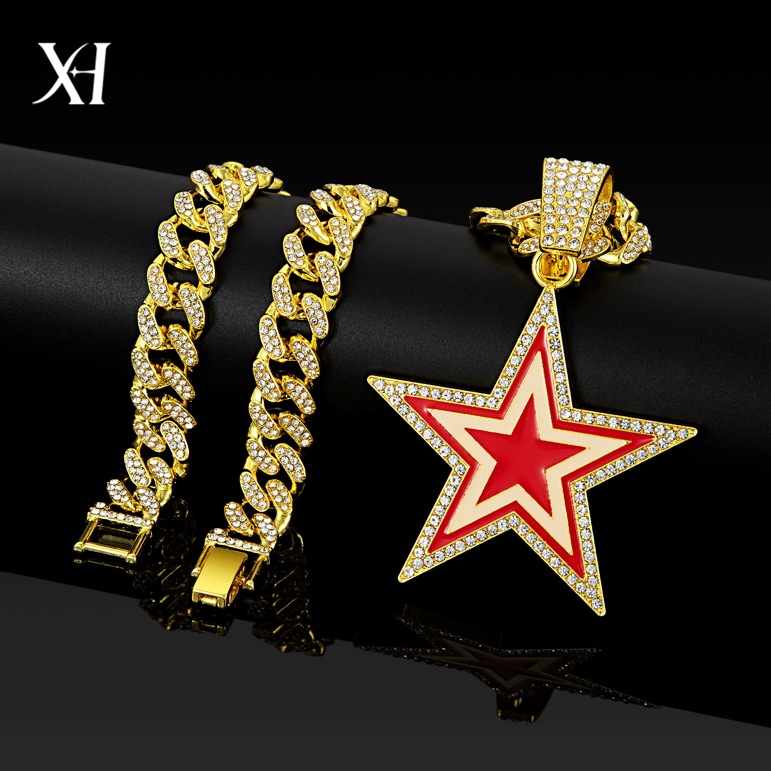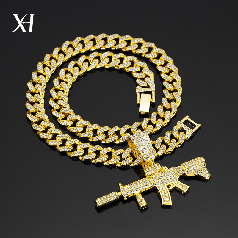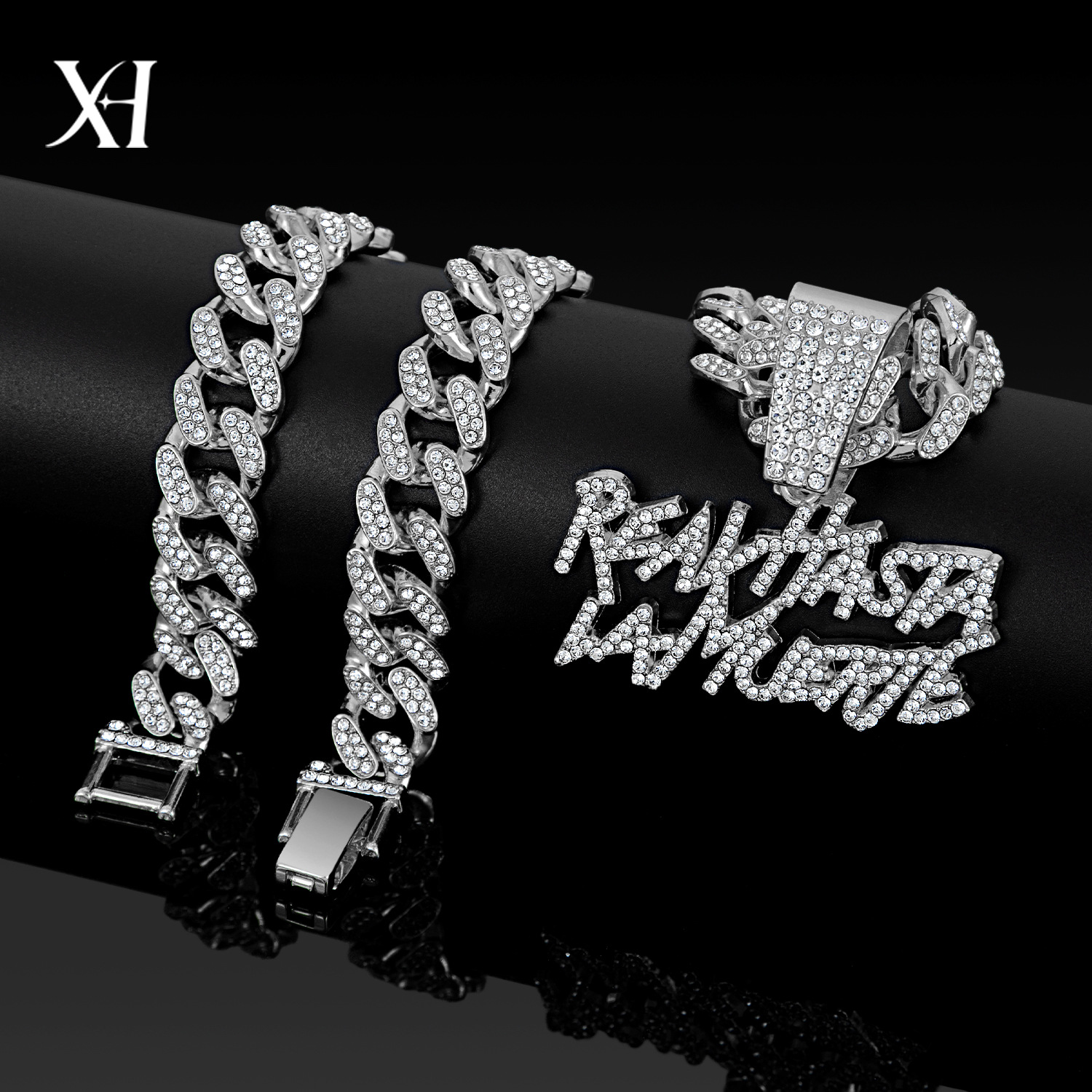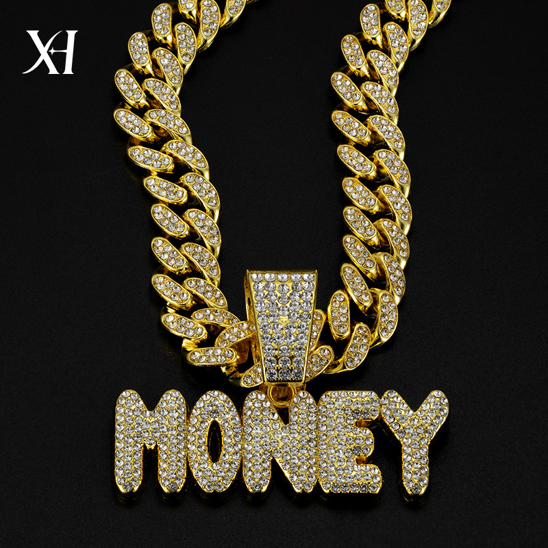 2024新款欧美跨境嘻哈潮男项链大圆盘晚宴吊坠合金满钻古巴链工厂