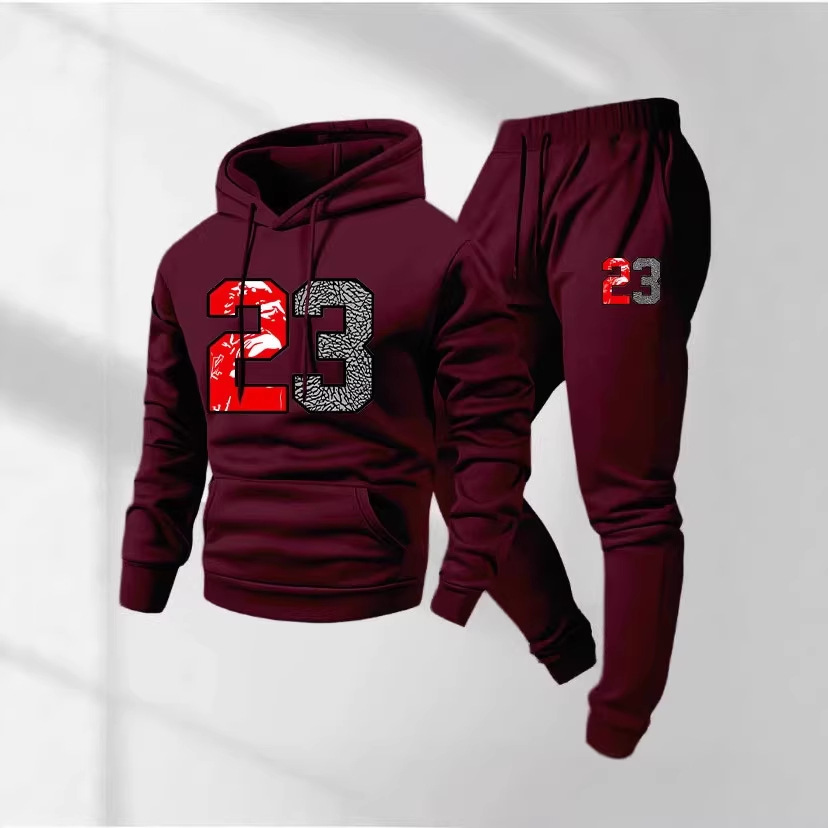 2025新字母印花卫衣套装秋冬加绒欧美卫裤跨境外套男街潮休闲套装