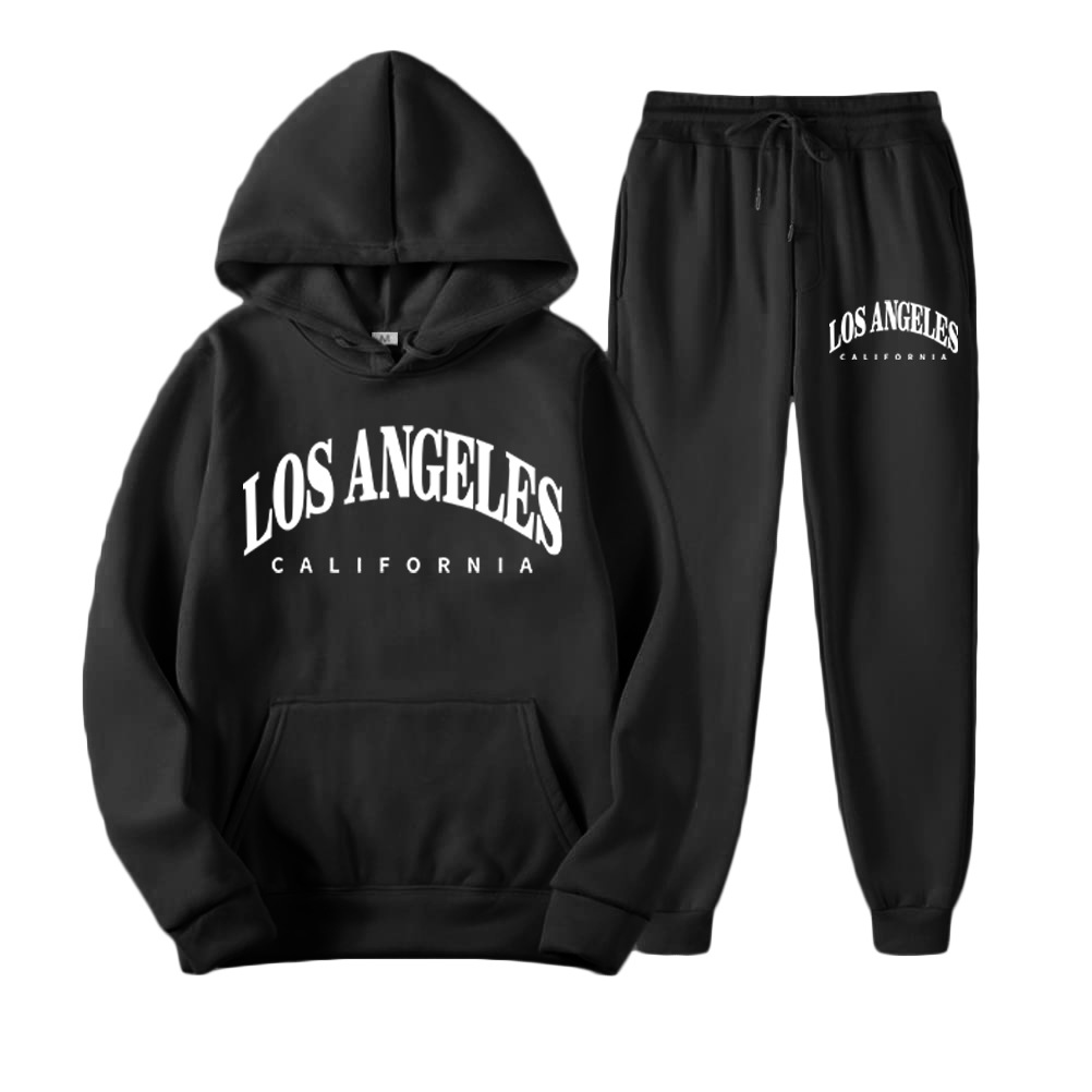 黑色复古字母印花 男士2件套长袖卫衣运动衫和运动裤慢跑冬季