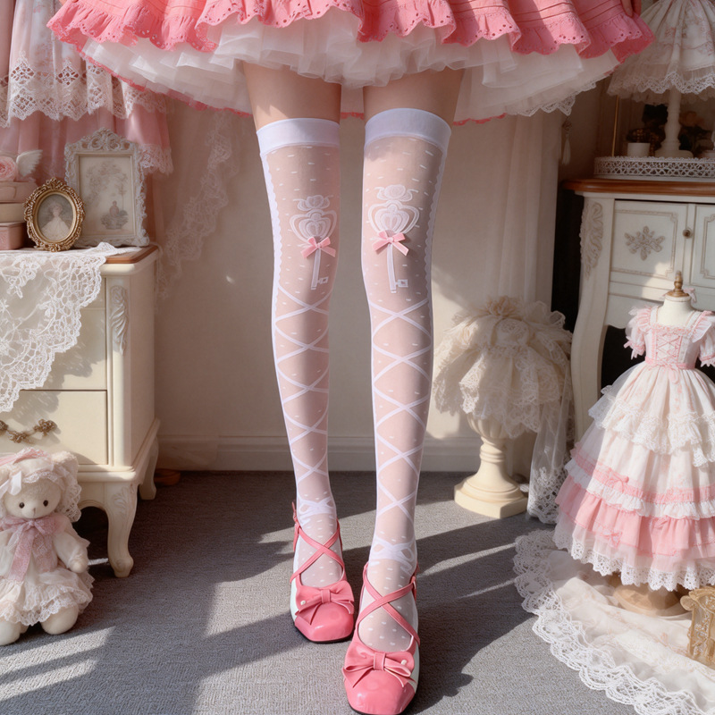 Lolita图腾之结春夏袜洛丽塔过膝长筒袜白色大腿袜潮可爱日系女袜