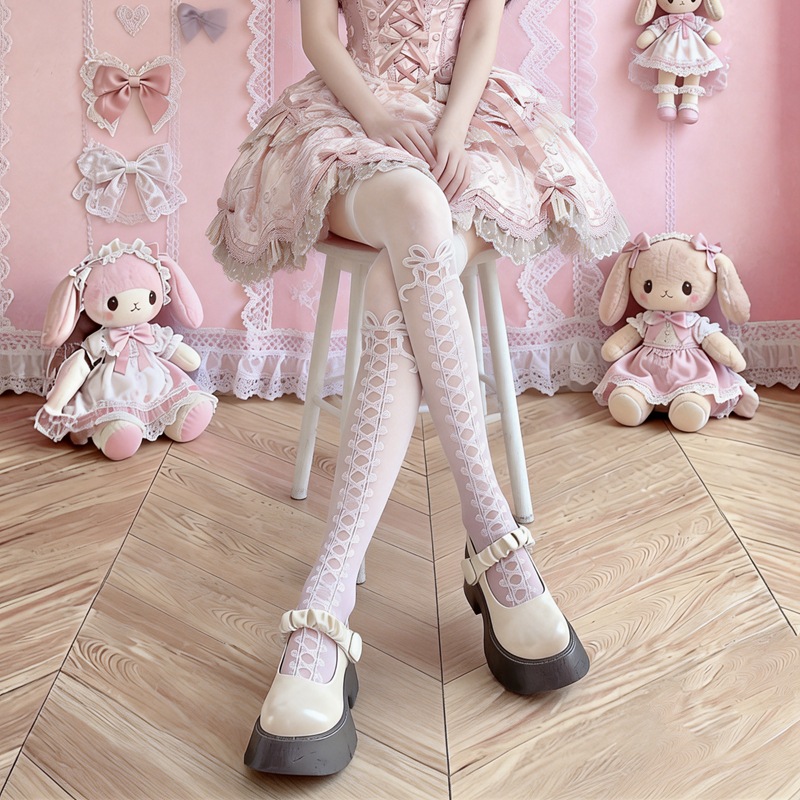 Lolita白ストッキング純欲高颜値蝶結び小衆甘美で可愛い日系セクシー美脚タイツ薄い