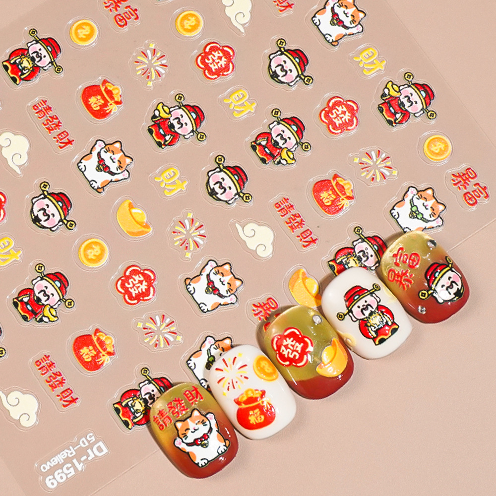 Redanco5D浮雕ins网红卡通美甲贴纸招财猫财神爷立体指甲贴Dr1599