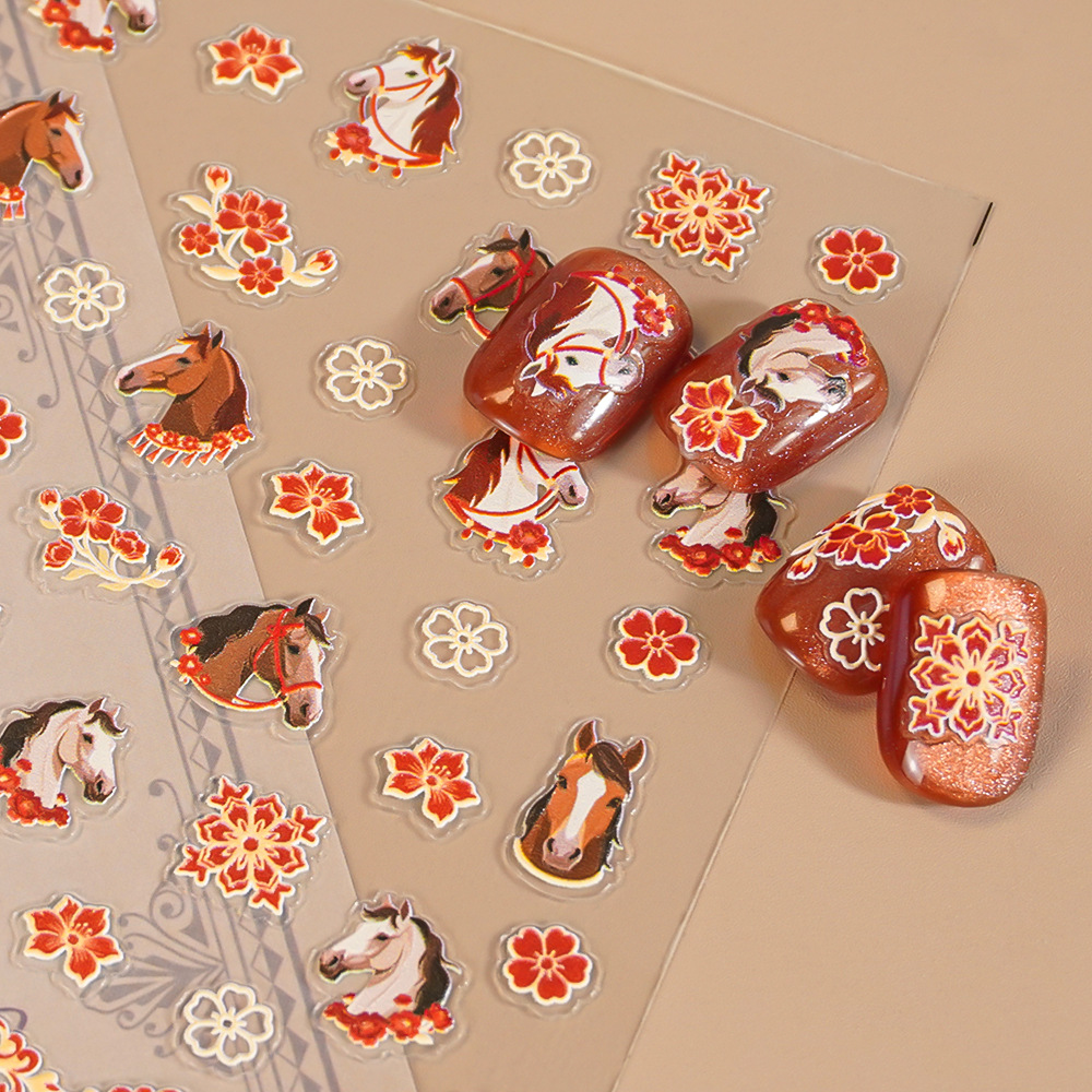Redanco5D浮雕ins网红卡通美甲贴纸新春马年大吉立体指甲贴He1609