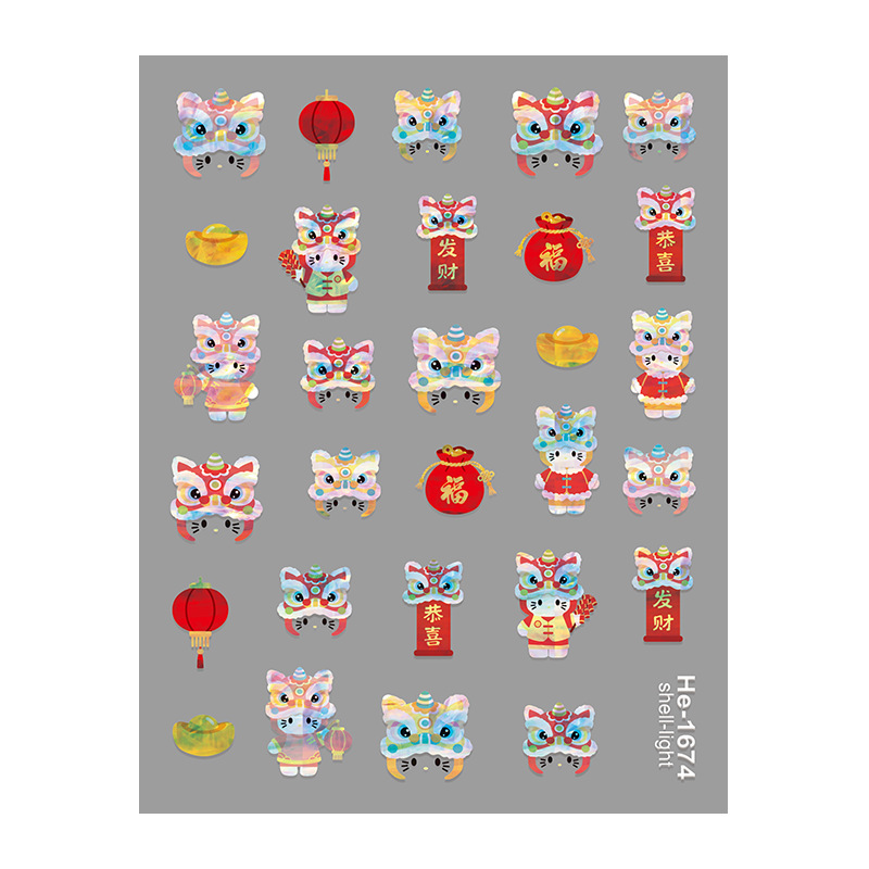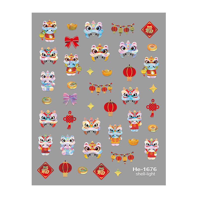 Redanco5D浮雕ins网红贝壳光美甲贴纸新年兽醒狮立体指甲贴He1678