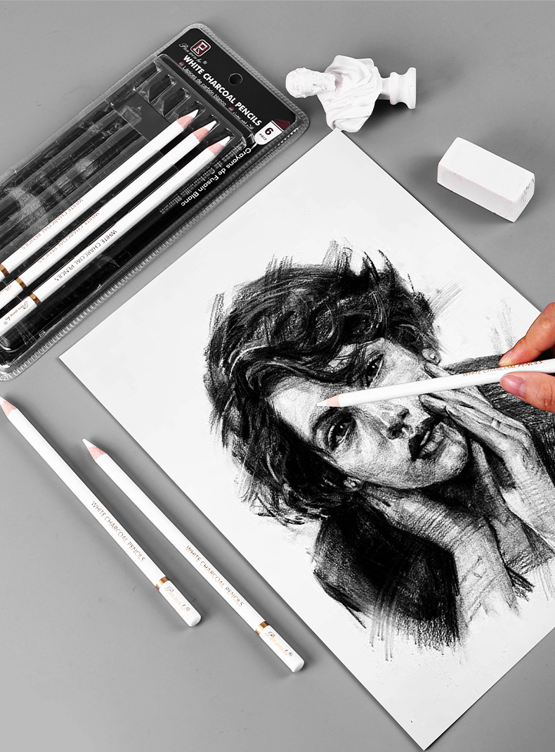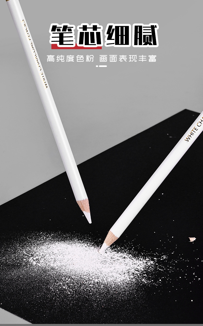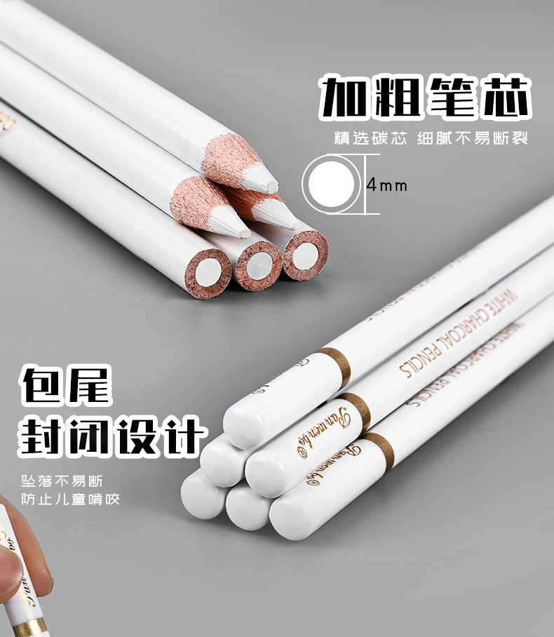工厂现货白炭笔美术生白色高光素描铅笔套装6支学生用品软炭笔