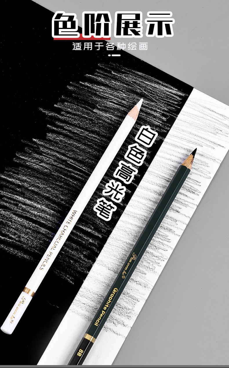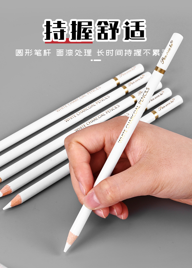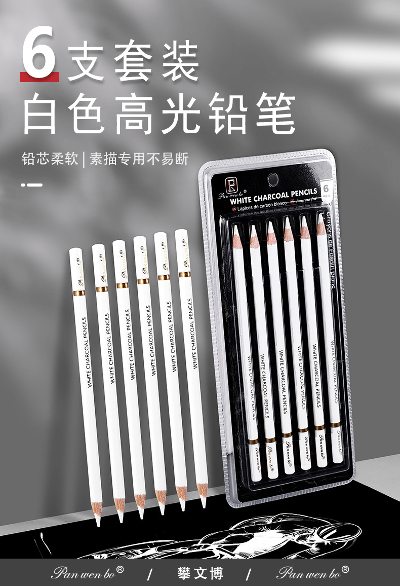 跨境亚马逊高光白炭笔6支铅笔套装速写加粗画笔软中硬碳笔批发