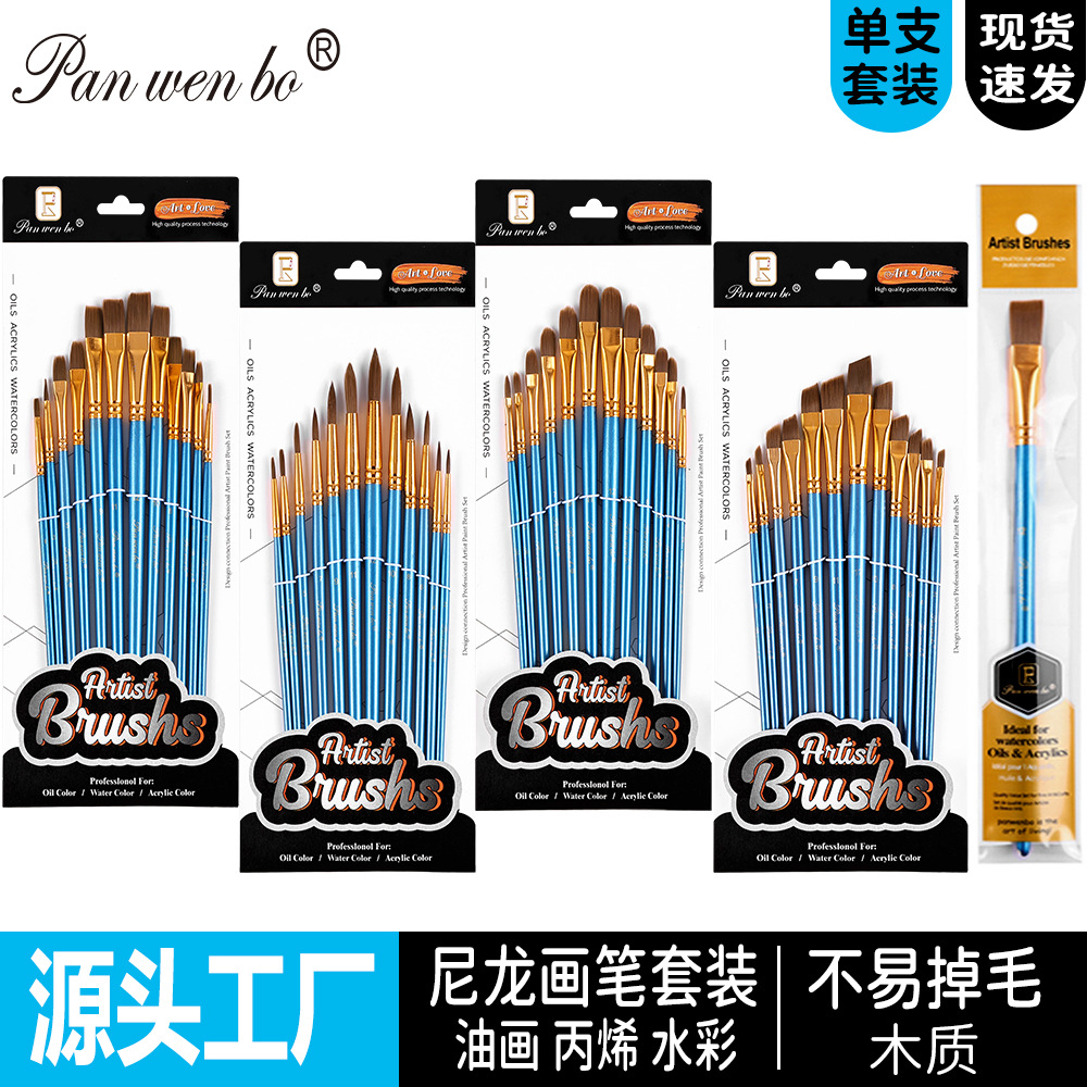 跨境绘画单支画笔12支套装丙烯颜料笔美术生画画工具批发