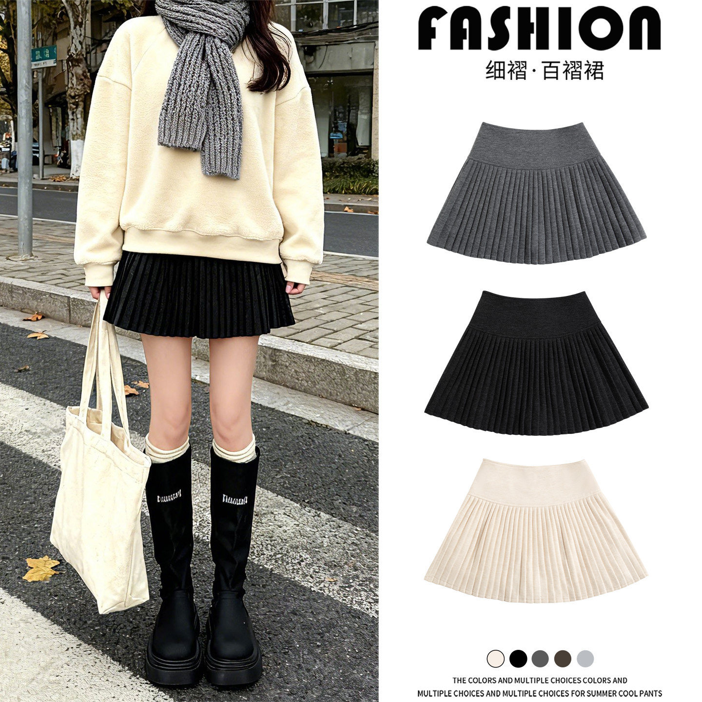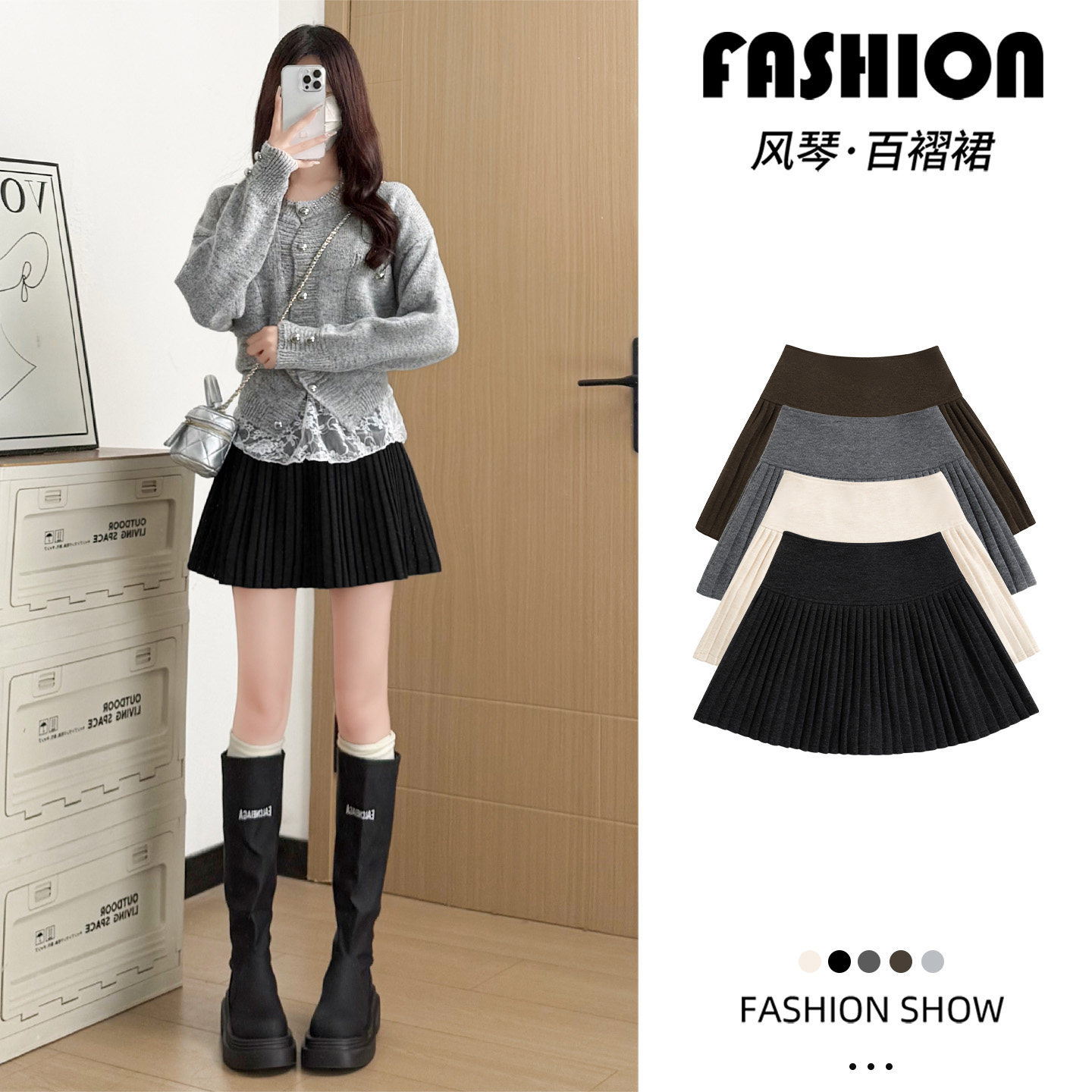 毛呢细褶jk短裙子女秋冬2026新款高腰显瘦a字裙小个子百褶半身裙